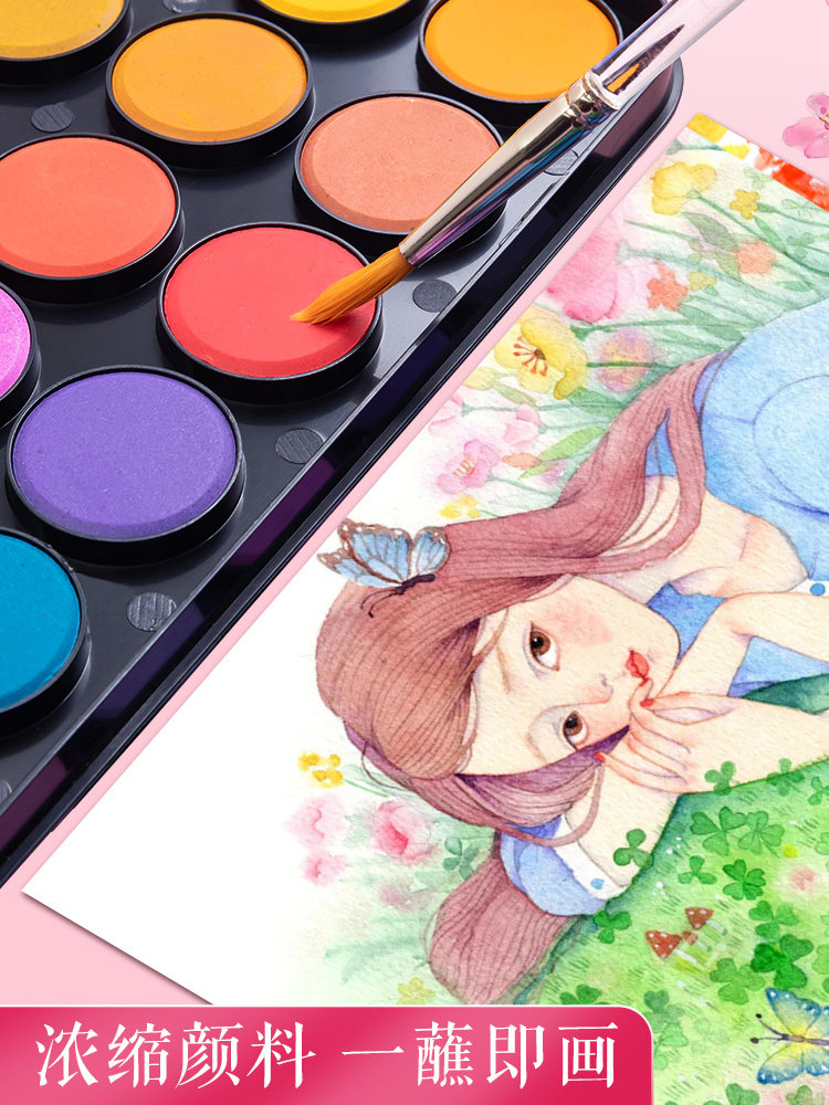 晨光固体水彩颜料初学小学生用12色24色36色固体水彩画饼绘画套装