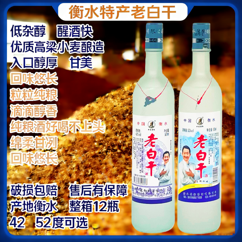 衡水产地张衡老白干500ml*12瓶磨砂瓶52度42度浓香型纯粮白酒整箱