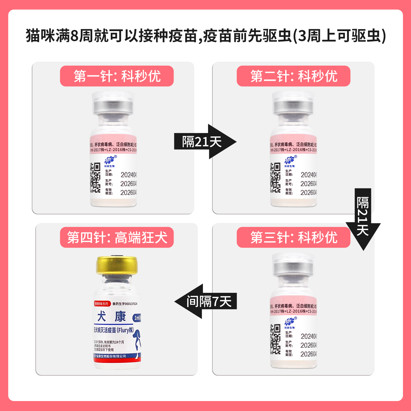 科前科妙优猫咪疫苗国产猫三联疫苗3针+狂犬幼猫一套自打疫苗套餐