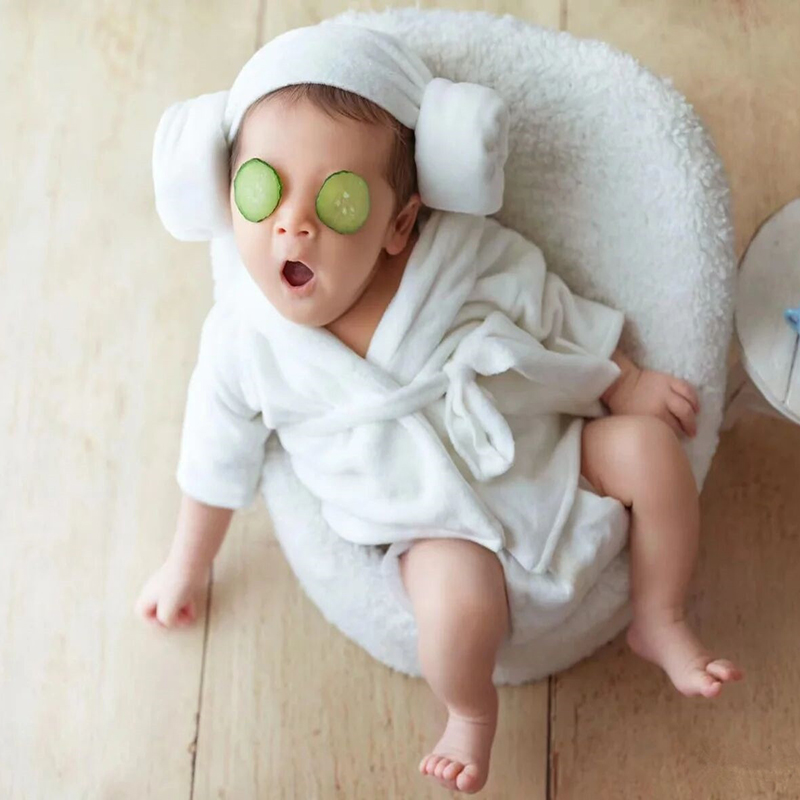 新生儿白色浴袍百天拍照服装