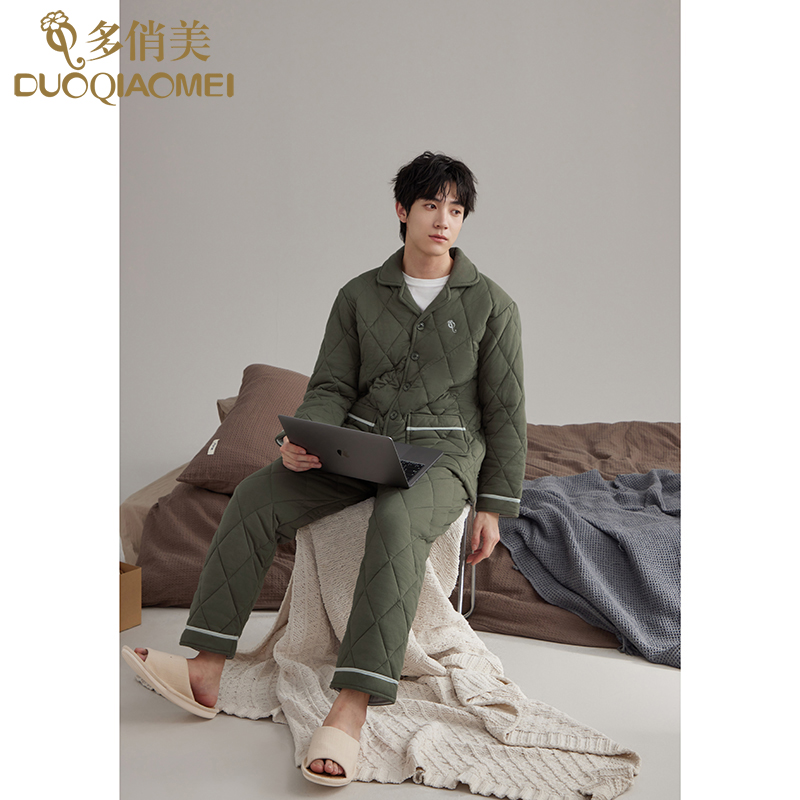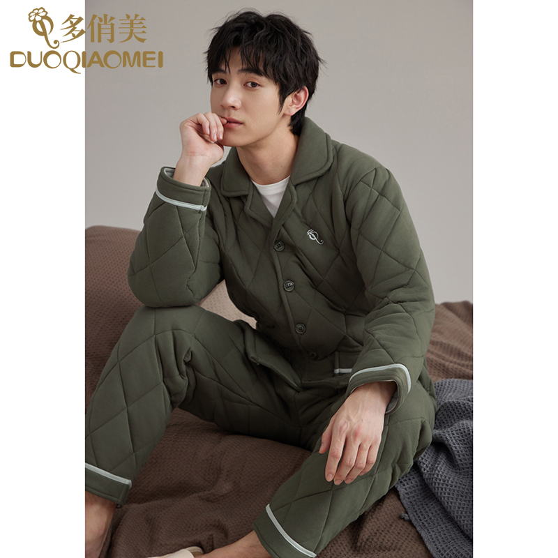 三层加厚夹棉男士睡衣秋冬季纯棉保暖大码棉袄冬款全棉家居服套装