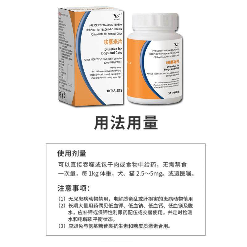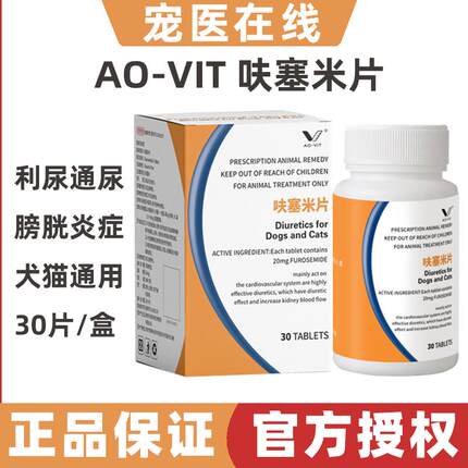 aovit呋塞米片宠物猫咪狗狗衰肾衰肝腹水积液尿路感染利尿通20粒