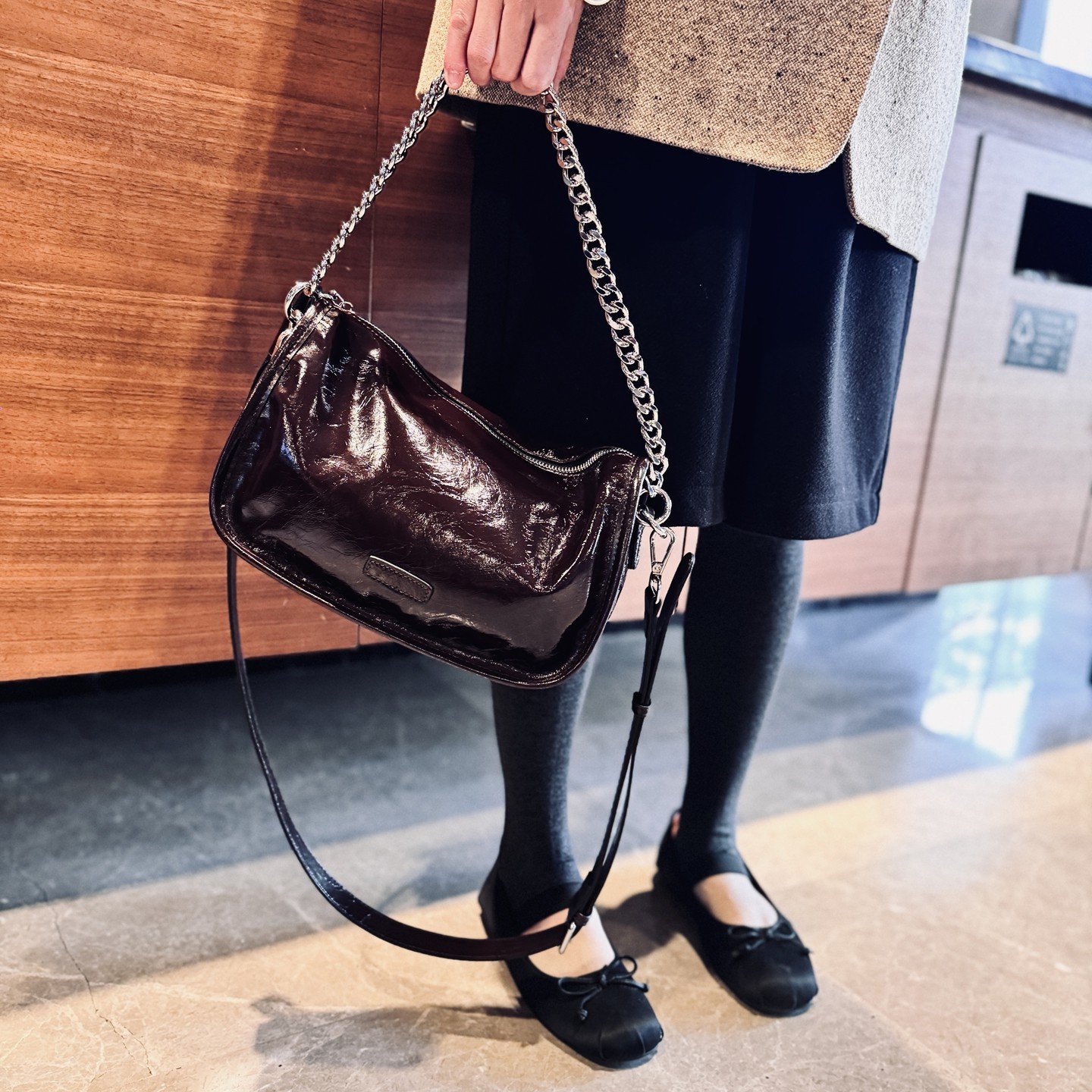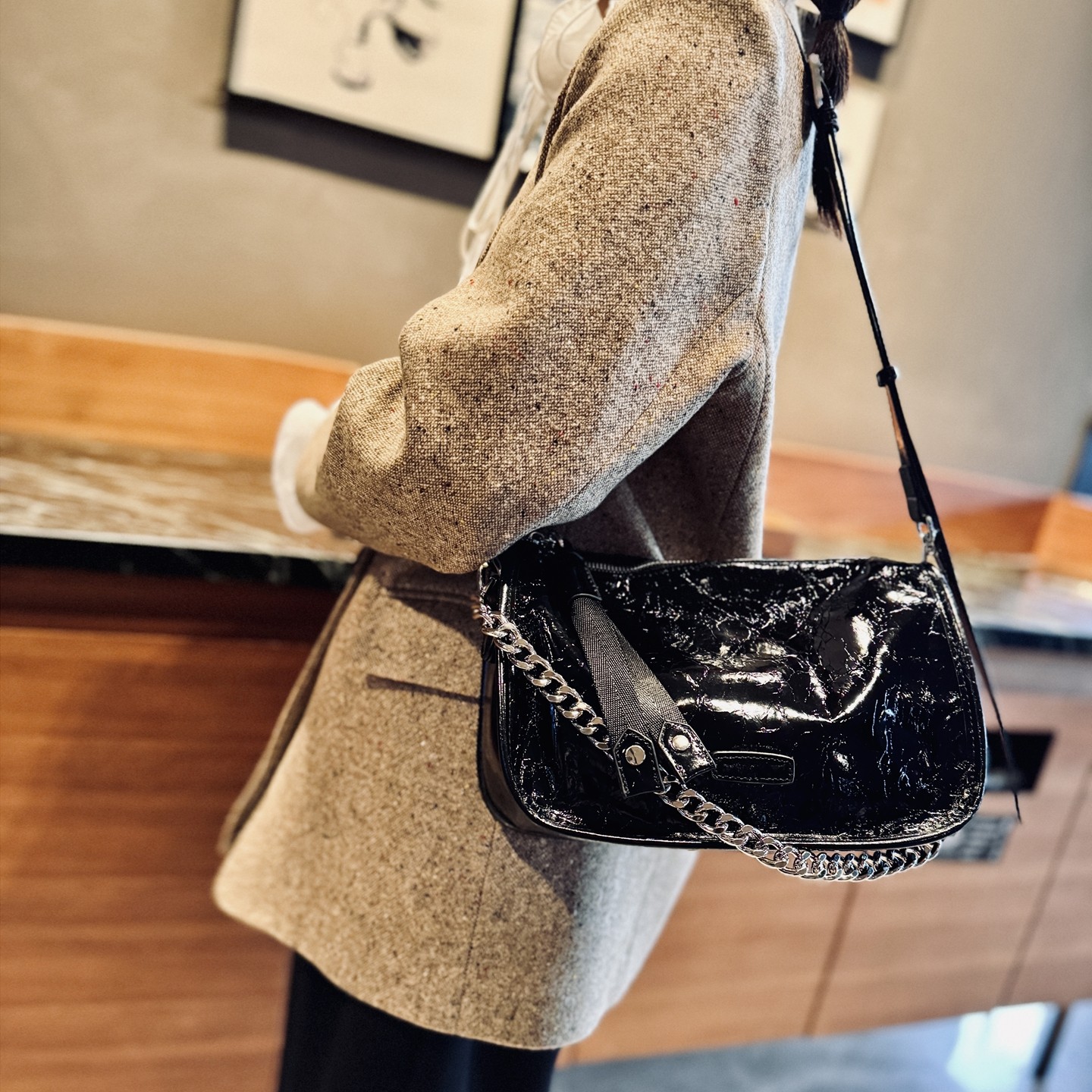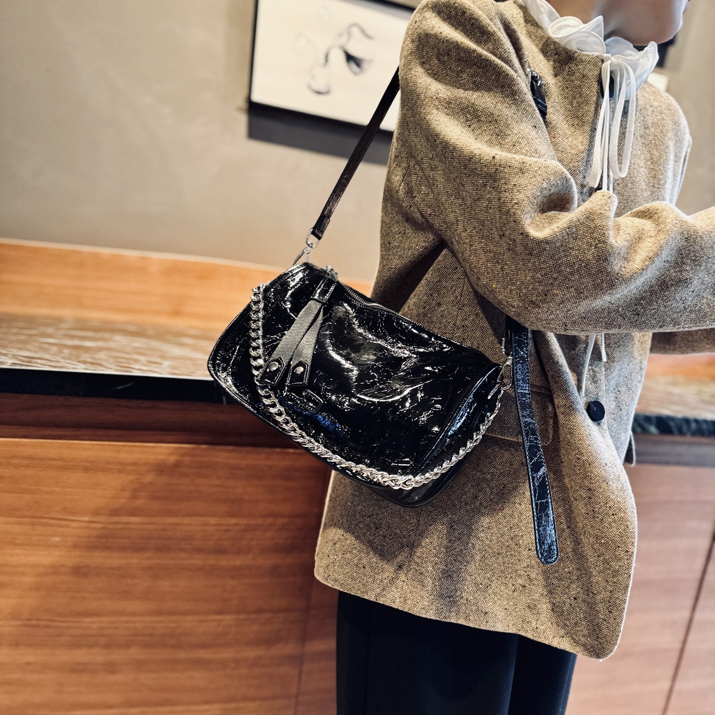 欧美时尚真皮女包2025年新款油蜡牛皮单肩腋下包链条包斜挎包女