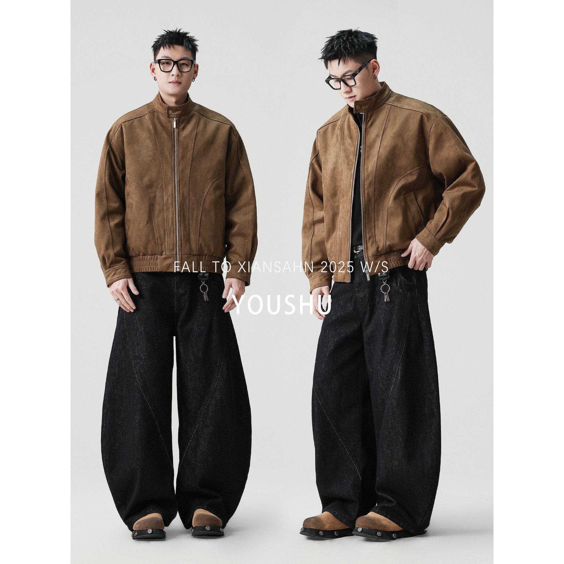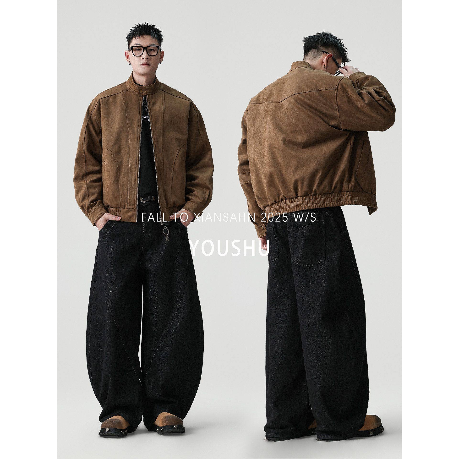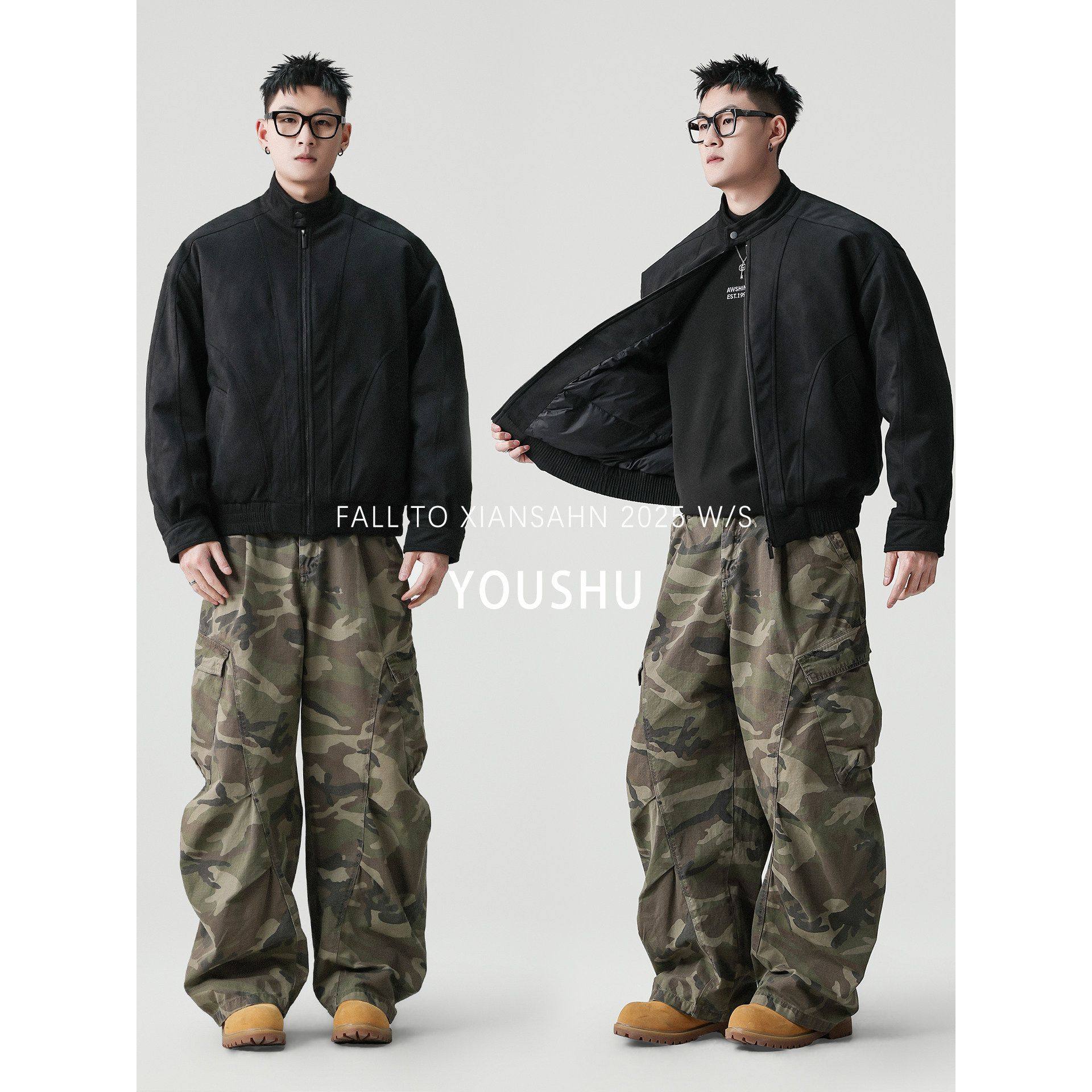 白鸭绒美式复古立领拼接羽绒服男2025冬季新款飞行夹克潮牌外套