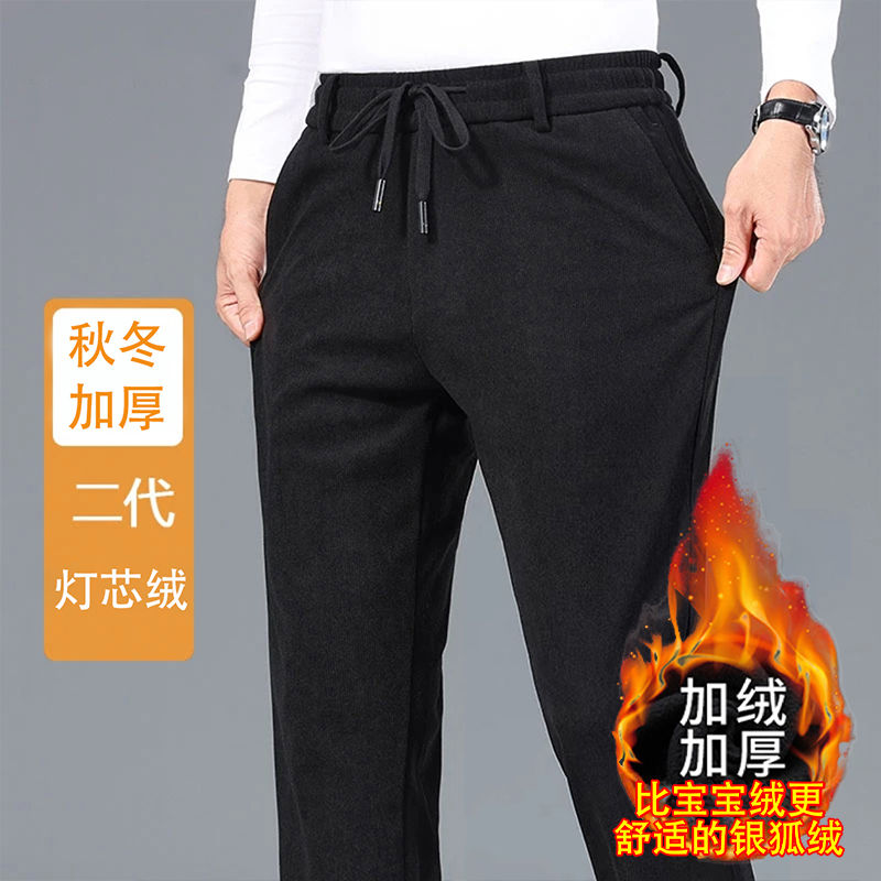 灯芯绒男裤加肥加大码秋冬直筒宽松运动休闲条绒加绒加厚长裤卫裤