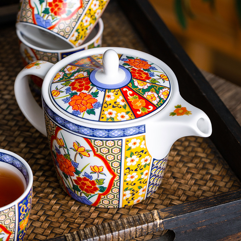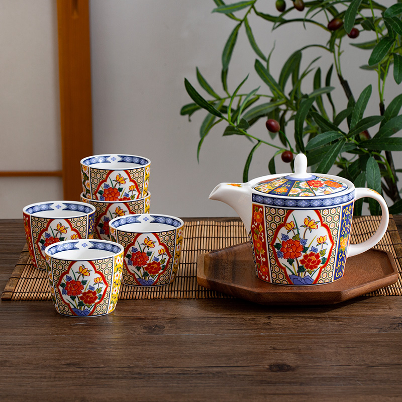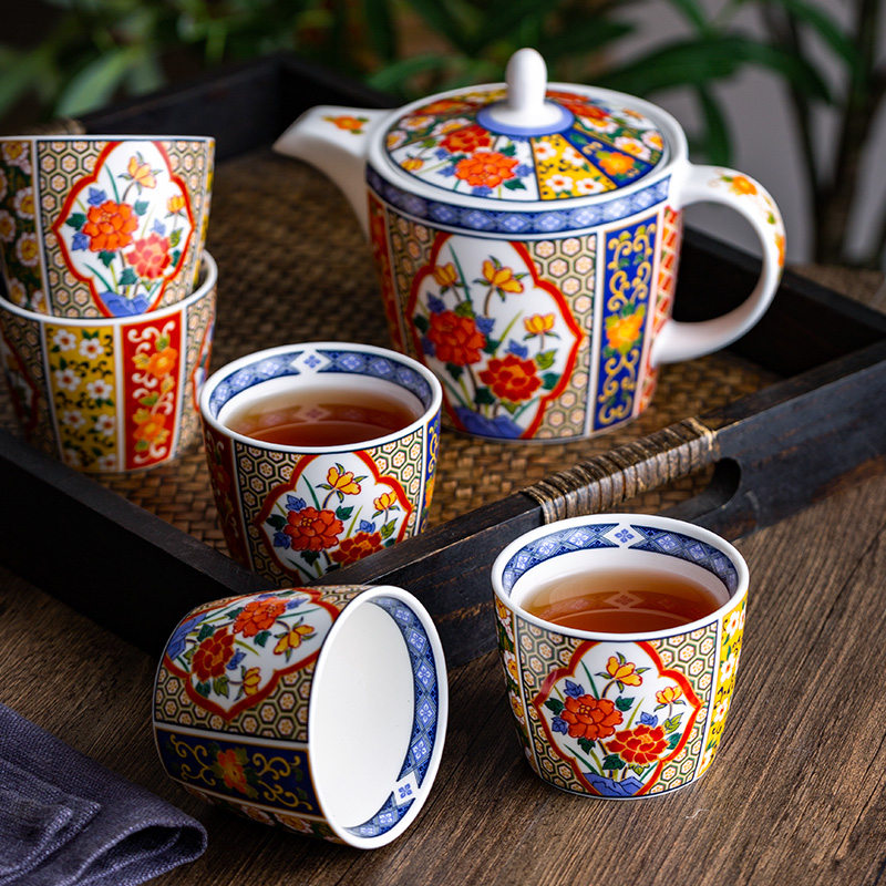 千代源绚烂锦茶具套装家用日式宫廷风一壶五杯整套陶瓷泡茶壶茶杯