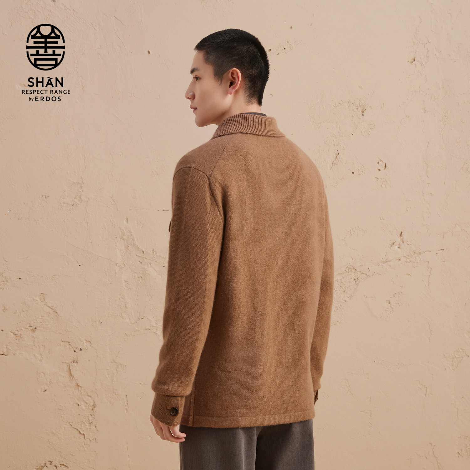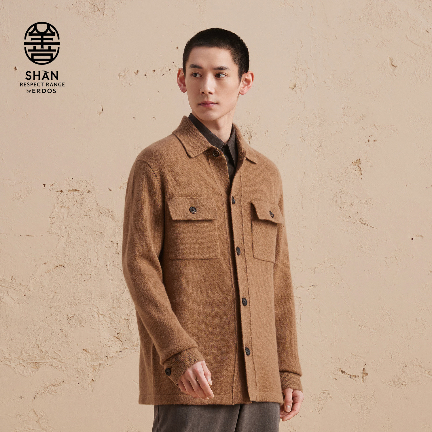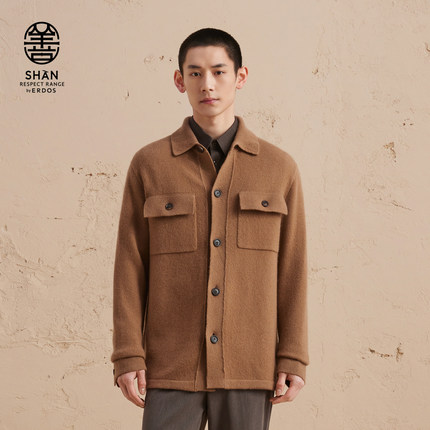 ERDOS 男装羊绒牦牛绒混纺衬衫夹克秋冬虚提厚款宽松开衫