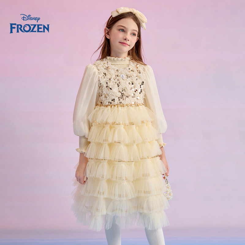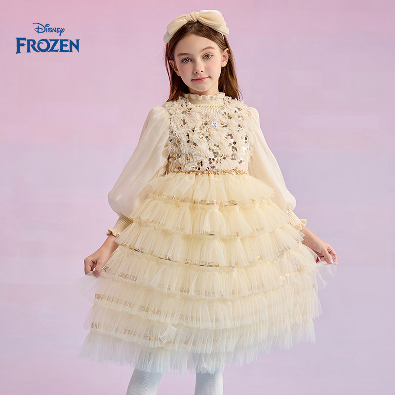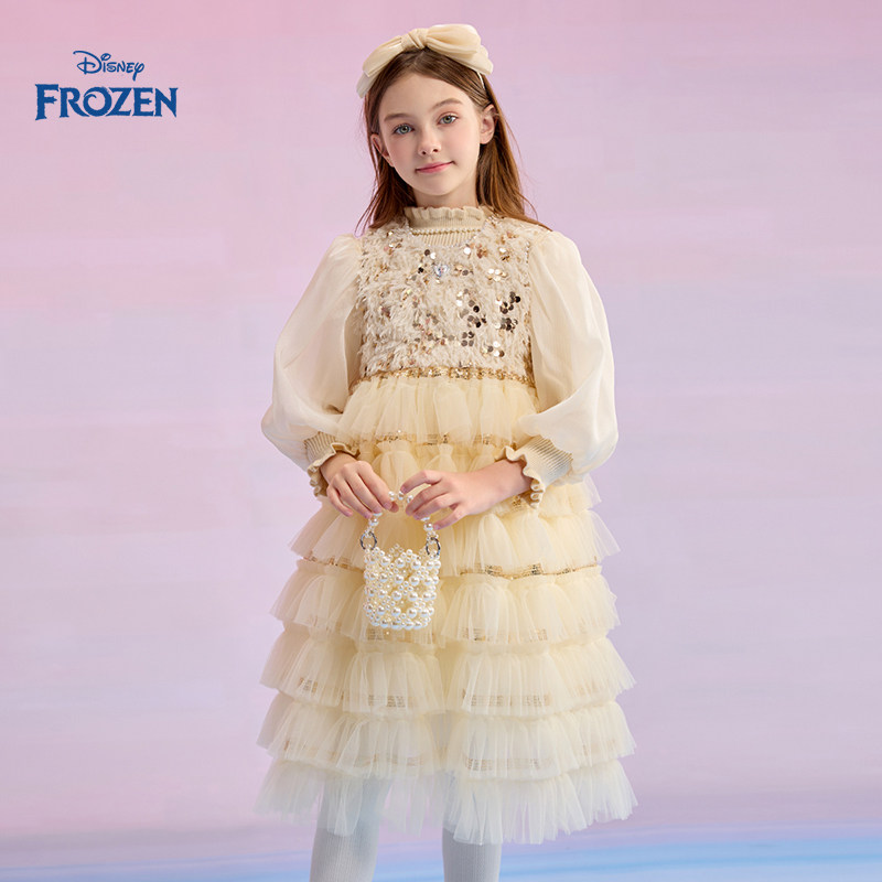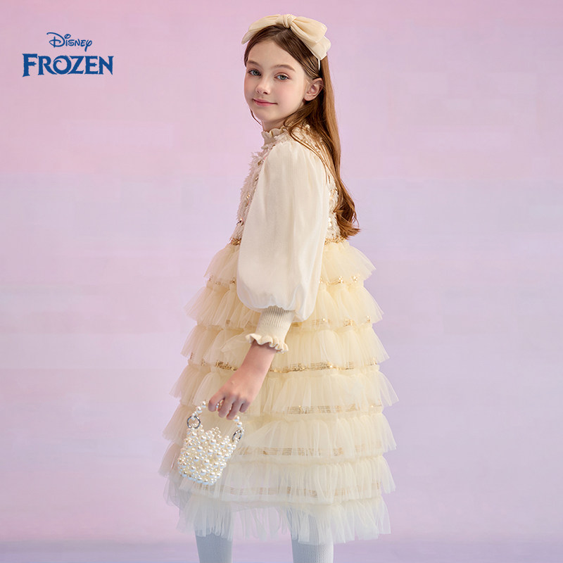 Disney/迪士尼女童连衣裙2025秋季新款网纱洋气时髦儿童公主裙子
