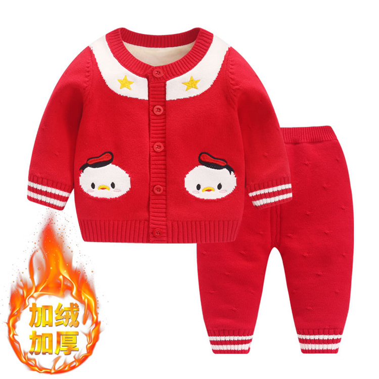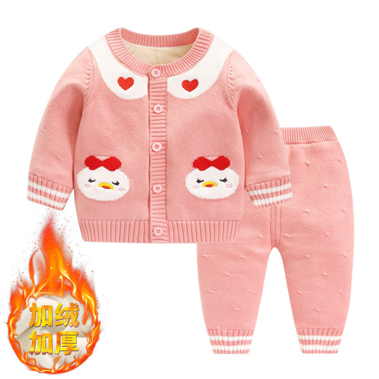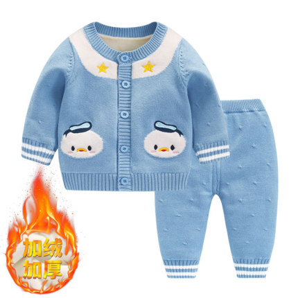 加绒加厚男女宝宝毛衣开衫套装婴儿针织开衫衫春秋冬纱衣小童打底