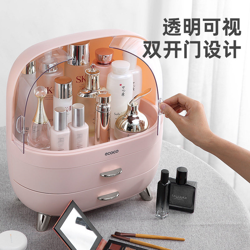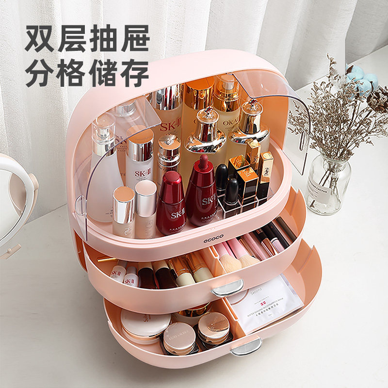 ecoco化妆品收纳盒桌面口红护肤刷家用防尘抽屉梳妆台整理置物架