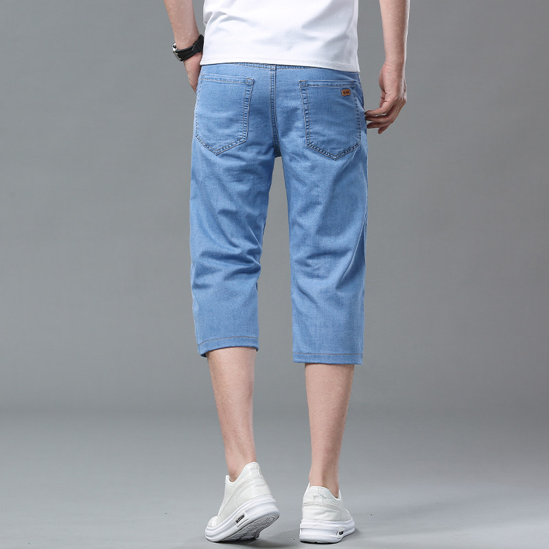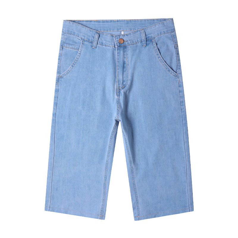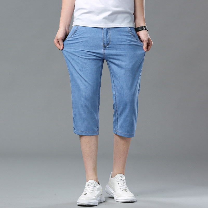冰丝牛仔短裤男士宽松直筒天丝七分中裤夏季超薄弹力过膝夏天马裤
