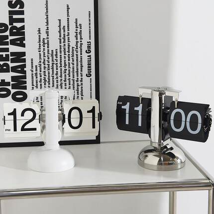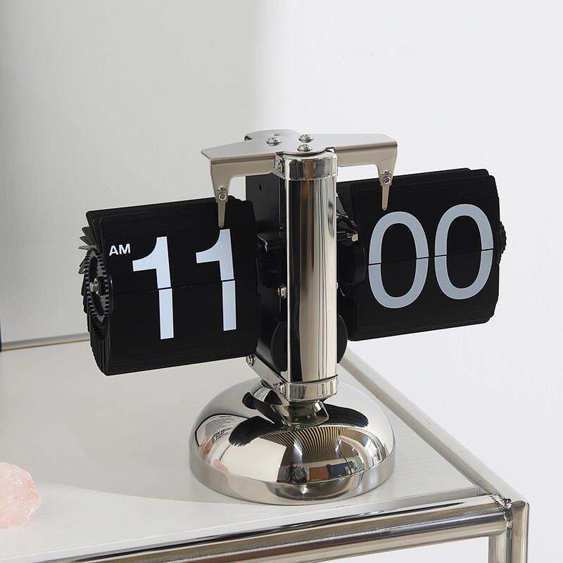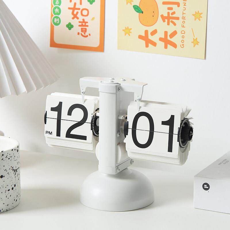 创意自动翻页时钟桌面日历摆件机械表摆台式数字钟表客厅轻奢装饰
