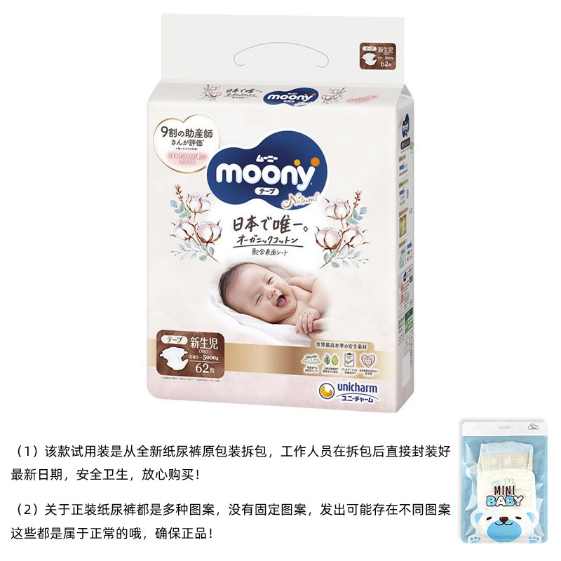 日本尤妮佳moony皇家婴儿纸尿裤试用装NB码新生儿初生柔软尿不湿