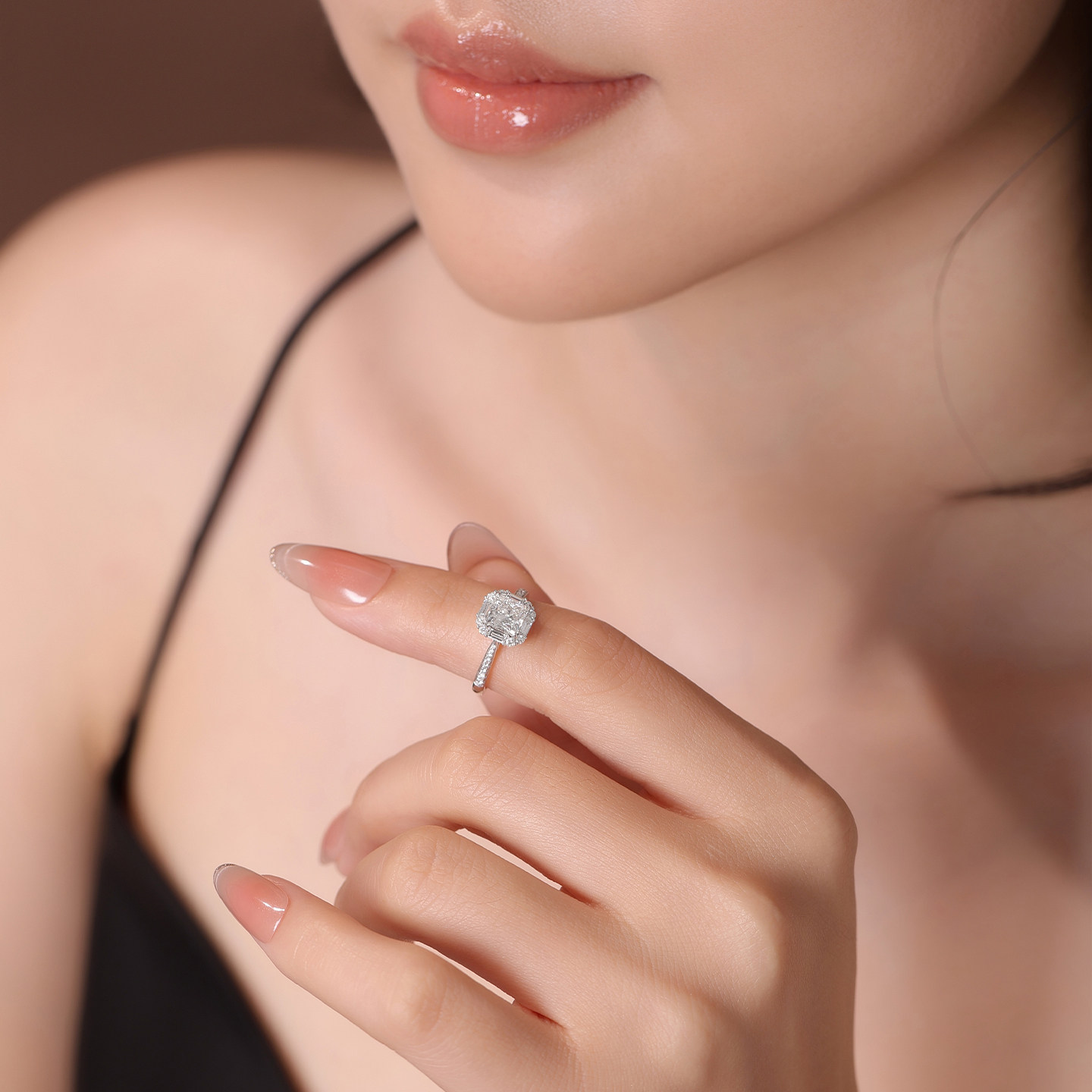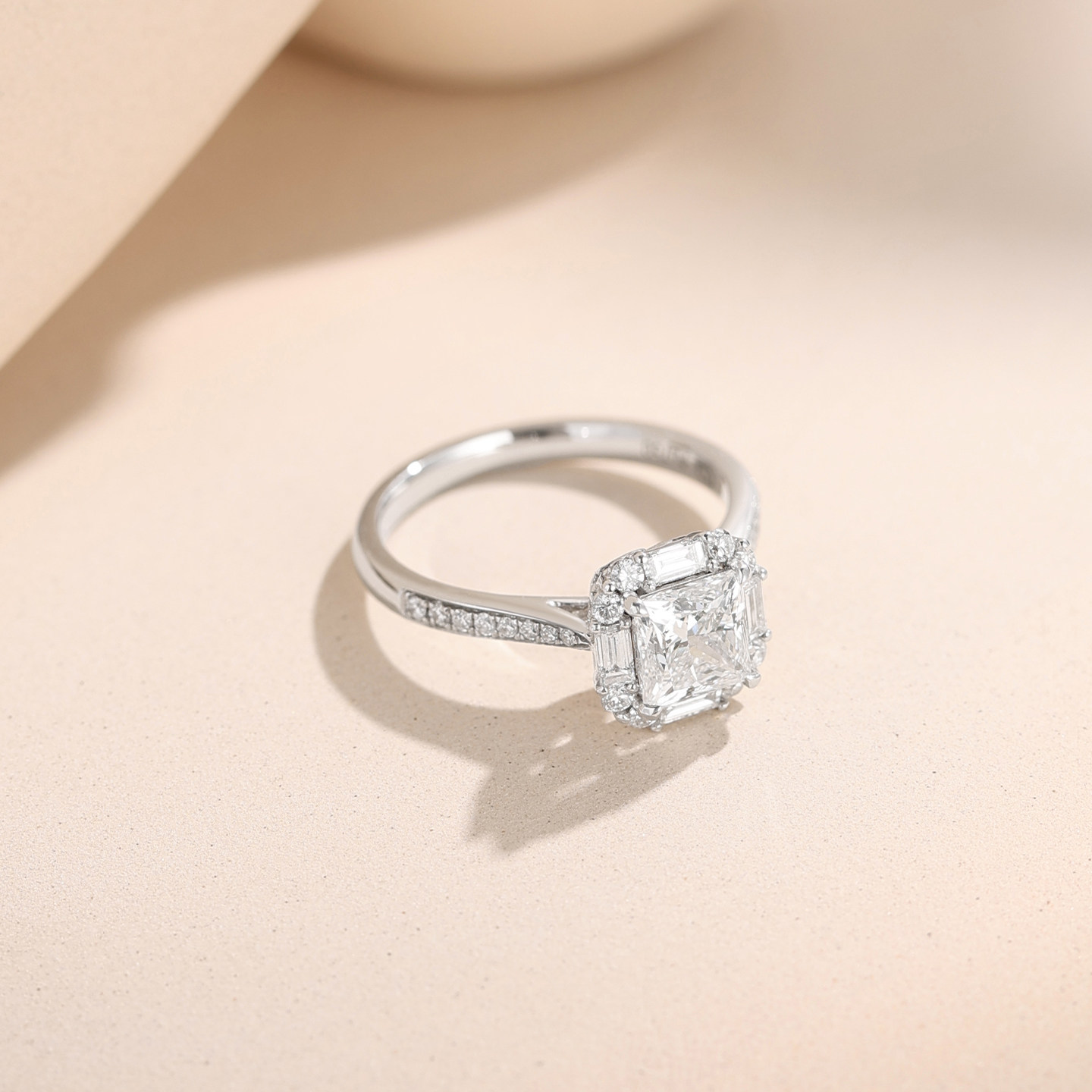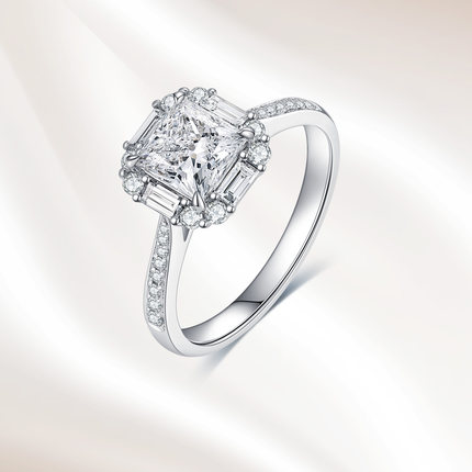 18K金培育钻石公主方直率围镶求婚戒指女50分一克拉真钻结婚钻戒