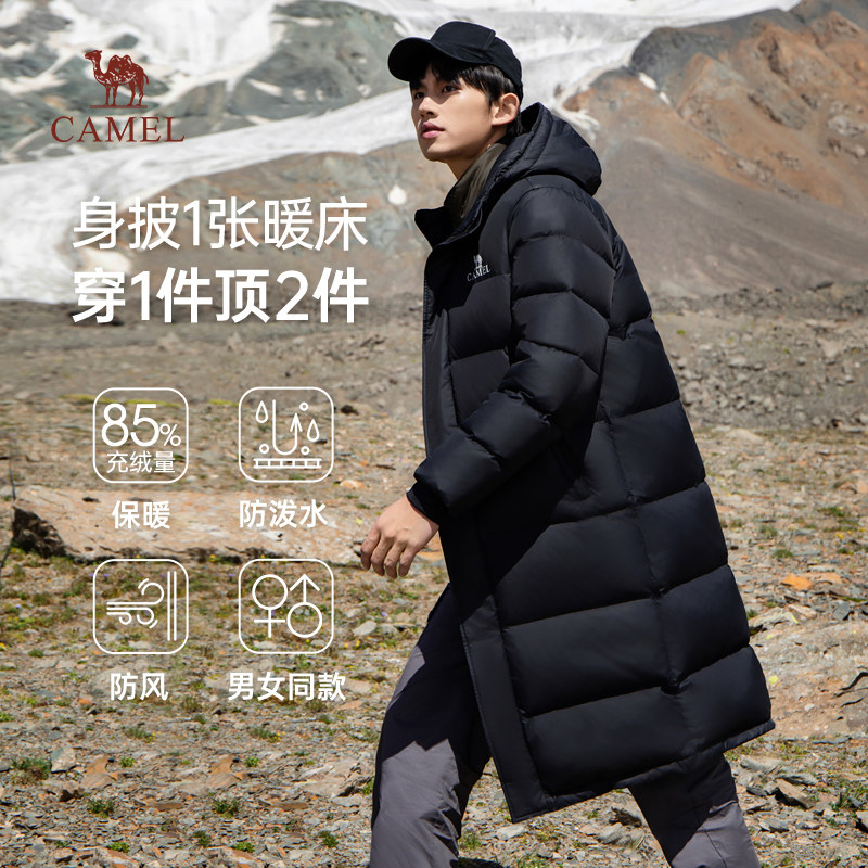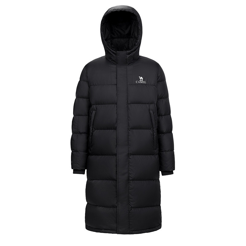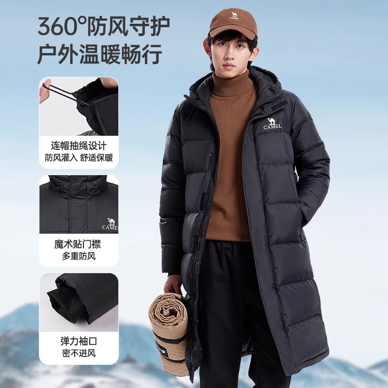 骆驼男装长款过膝羽绒服男户外加厚保暖防风白鸭绒连帽外套