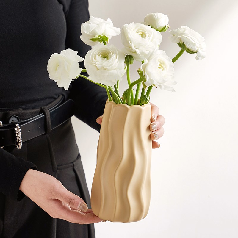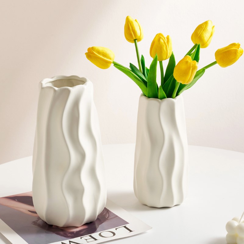 白色陶瓷花瓶简约现代奶油风高级感水培插花鲜花客厅餐桌装饰摆件