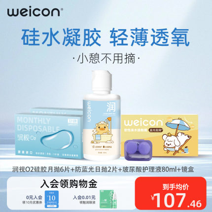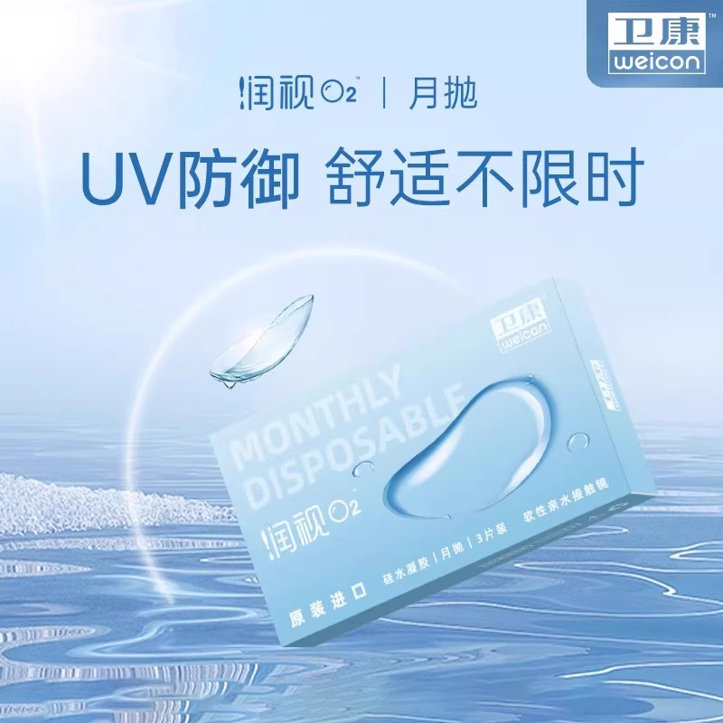 卫康润视O2硅水凝胶月抛6片装隐形眼镜近视透明高透氧舒适正品