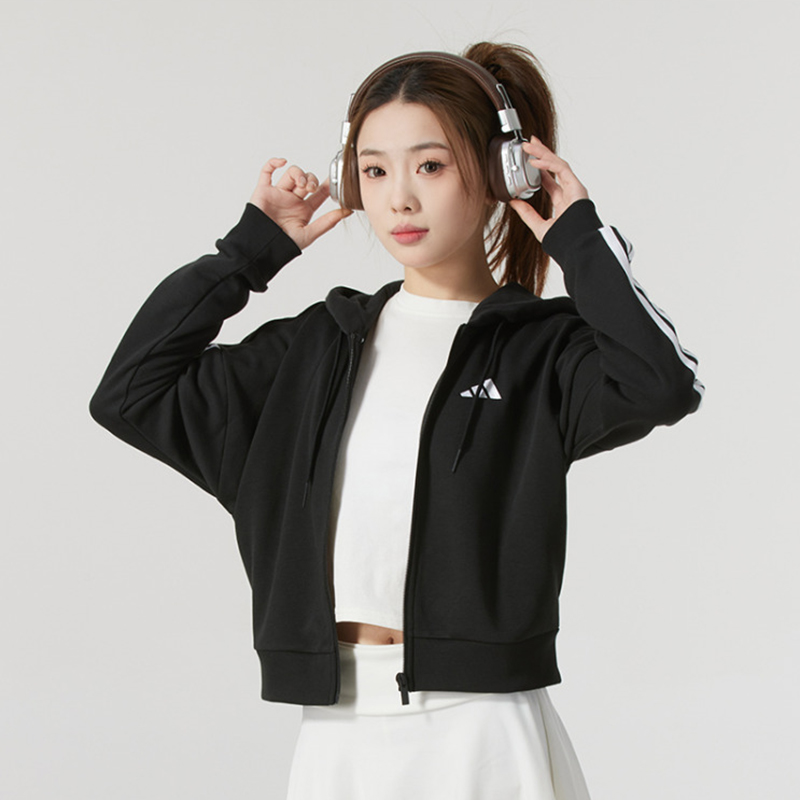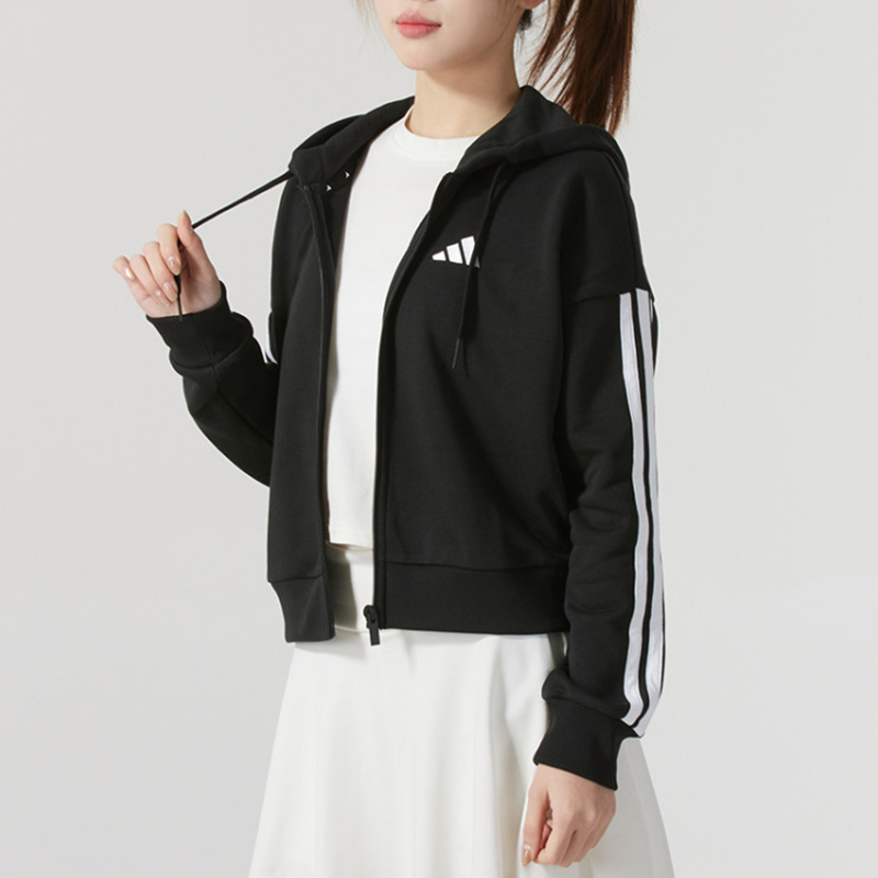 2025新款阿迪达斯女装连帽夹克 W 3S FT FZ HD休闲运动外套JE0052