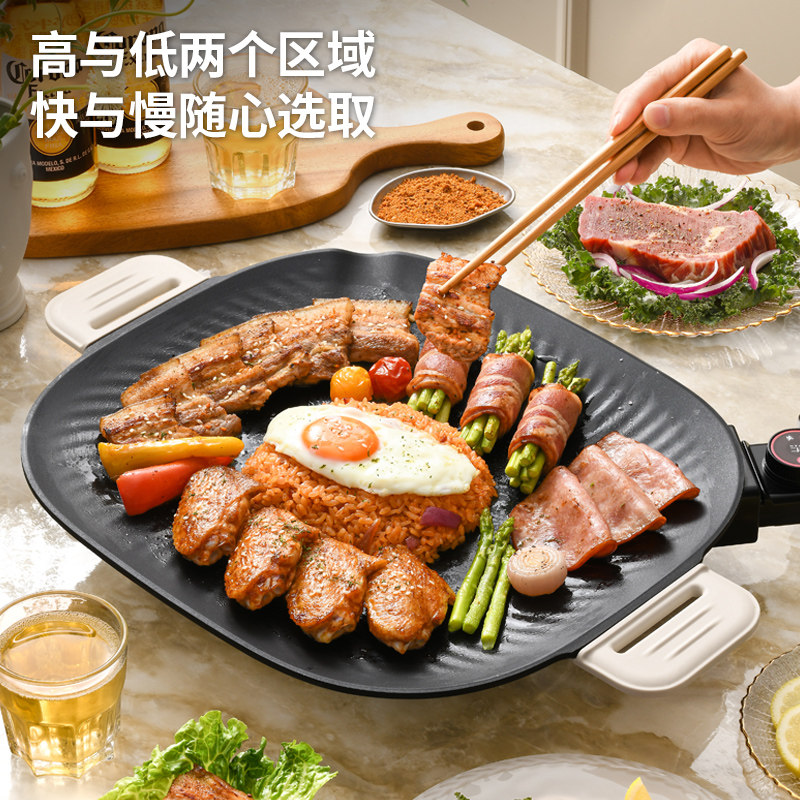 利仁电烤盘烤肉盘家用不粘电烧烤炉烤肉串机多功能室内轻烟电烤锅