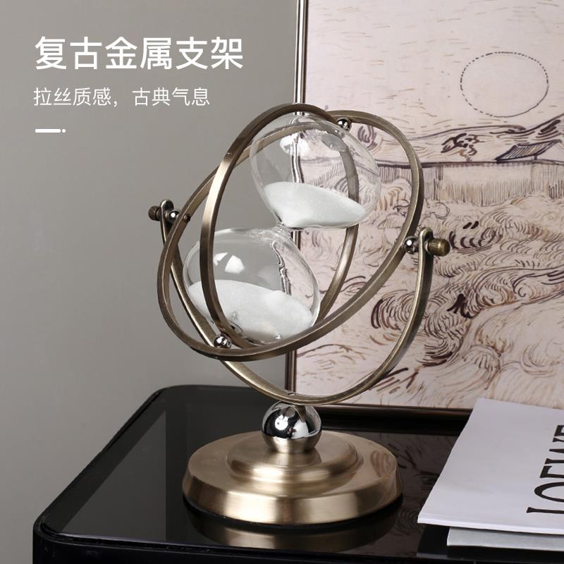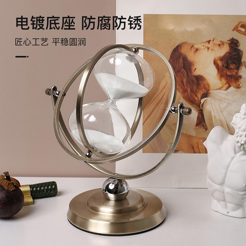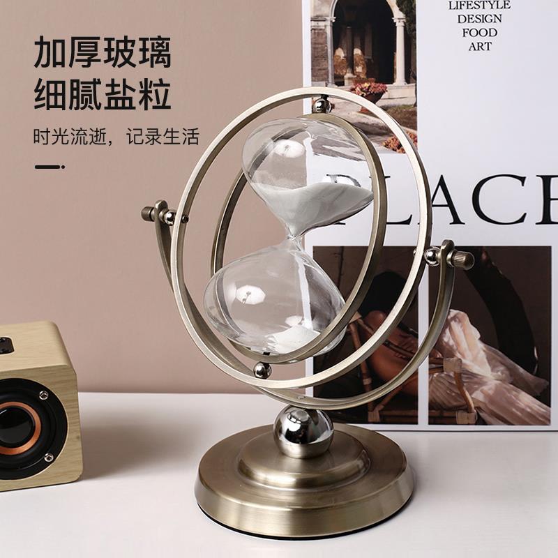 创意轻奢地球仪时间沙漏摆件计时器30分钟客厅酒柜书房桌面装饰品