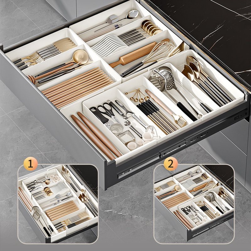 日本精工厨房抽屉分隔收纳盒可伸缩餐具筷子刀叉多功能抽屉储物盒