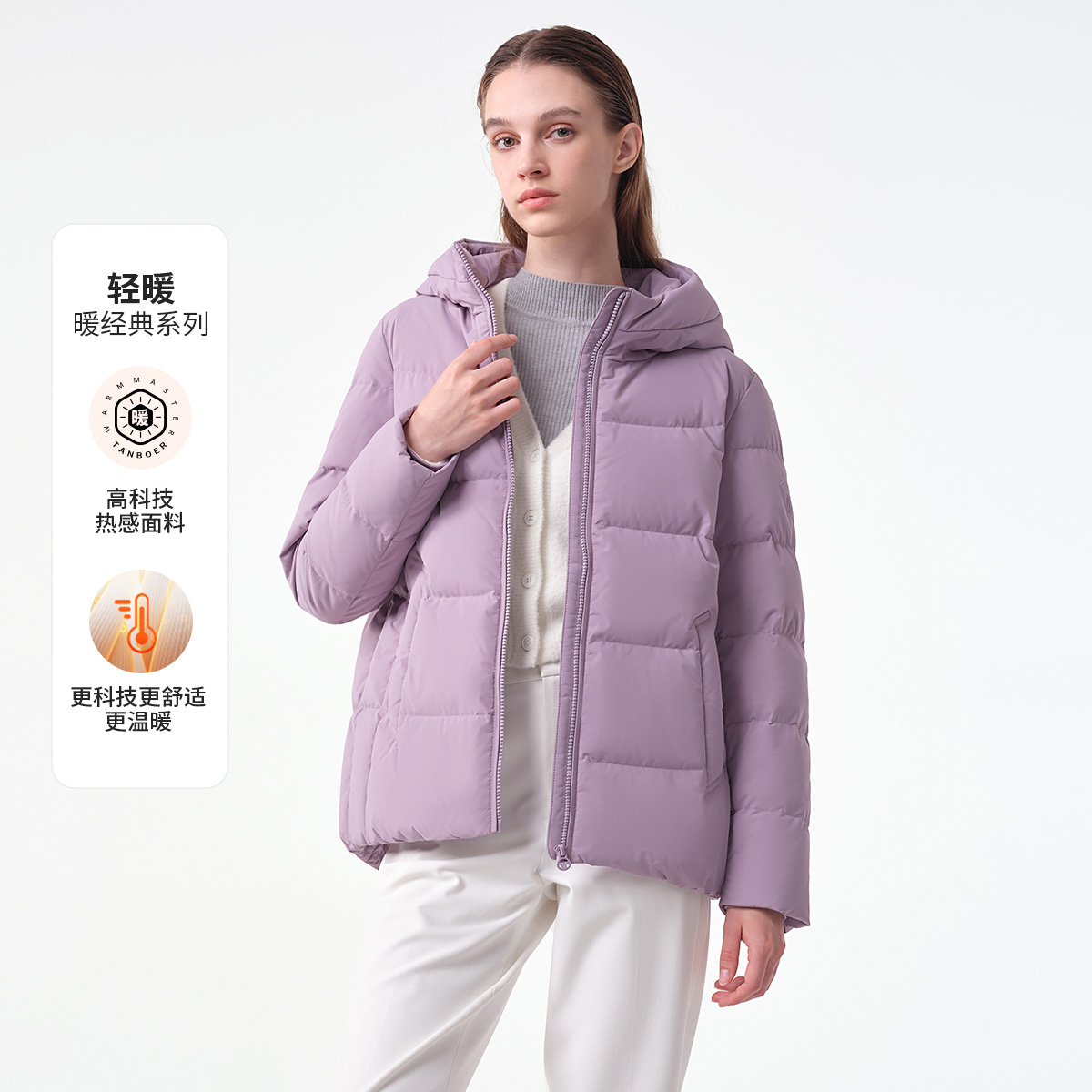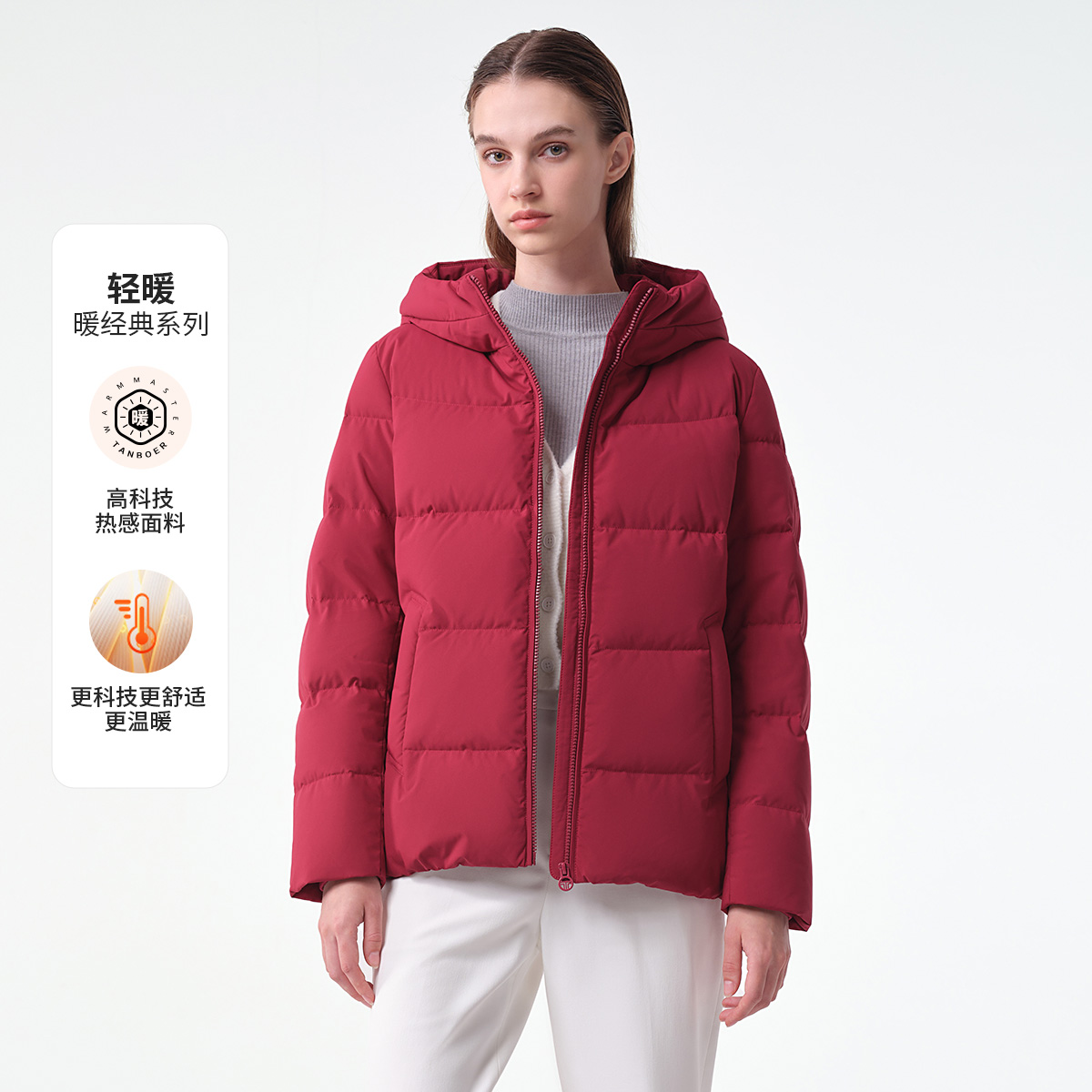 【蓄热内里】坦博尔中老年羽绒服短款连帽妈妈款宽松修身保暖外套