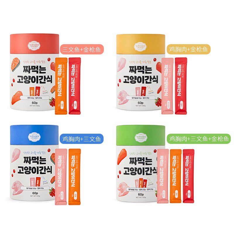 韩国Cattem鲜肉猫条60支猫零食鸡肉三文鱼金枪鱼幼成猫零食湿粮