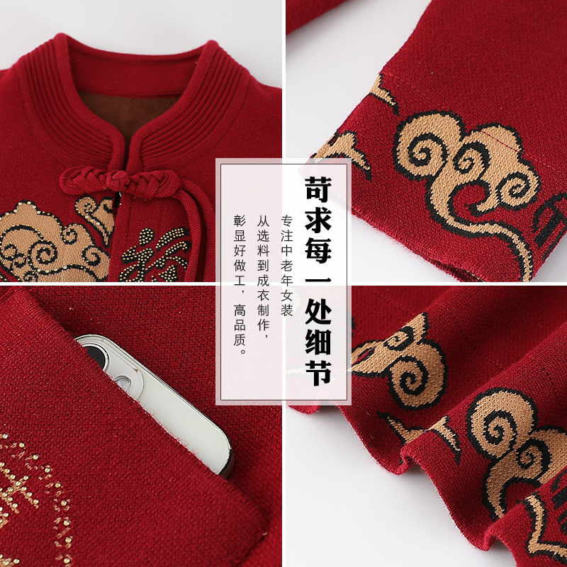 中老年人春秋装女奶奶毛衣加绒喜庆外套妈妈秋冬装老太太针织开衫
