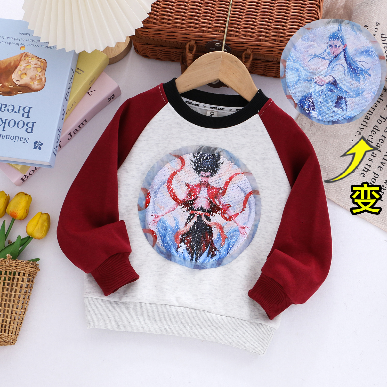 儿童纯棉变色亮片哪吒敖丙卫衣