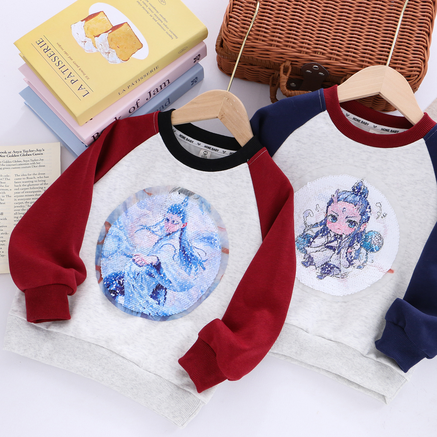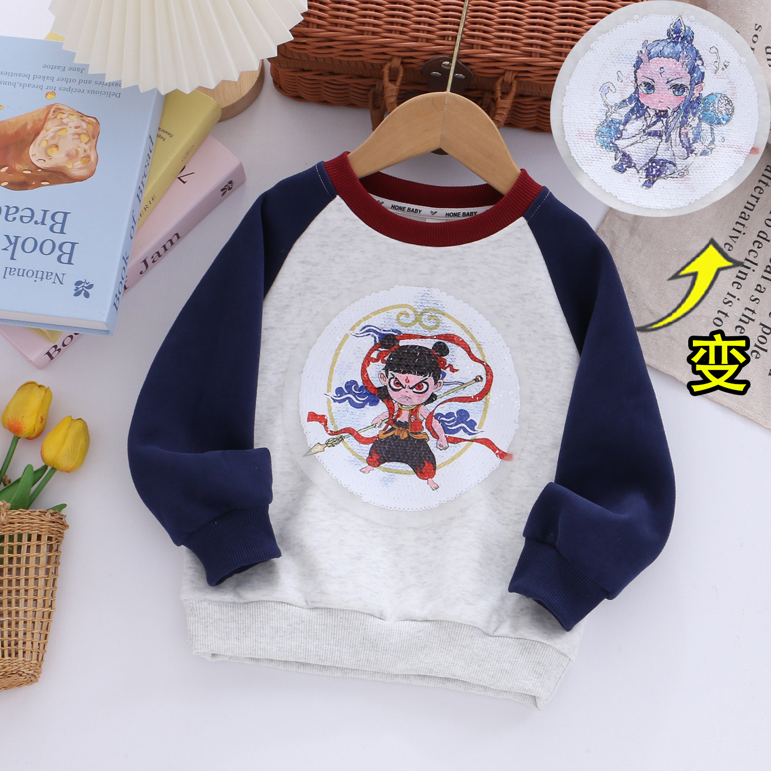 儿童纯棉变色亮片哪吒敖丙卫衣25秋冬装男童小男孩加绒插肩袖上衣