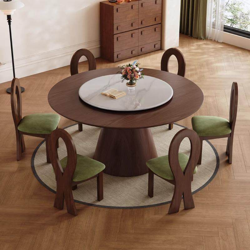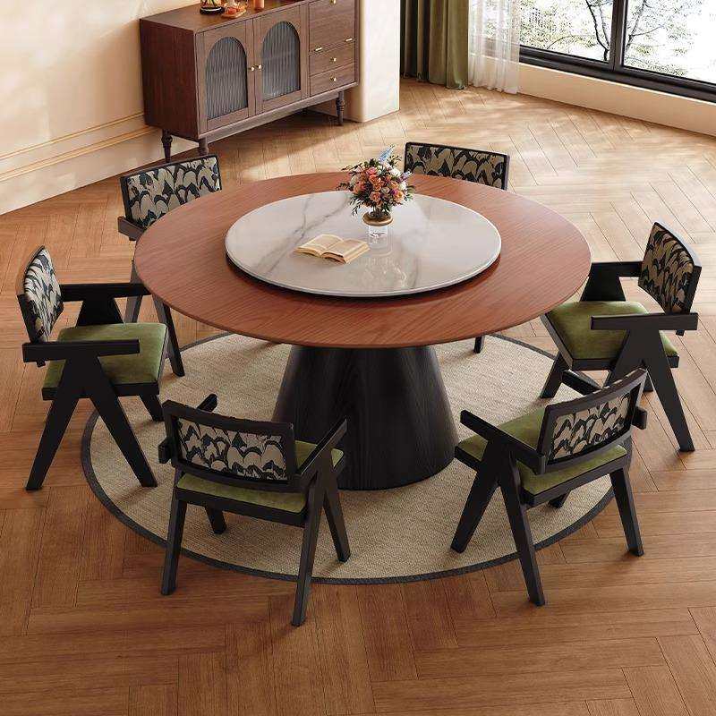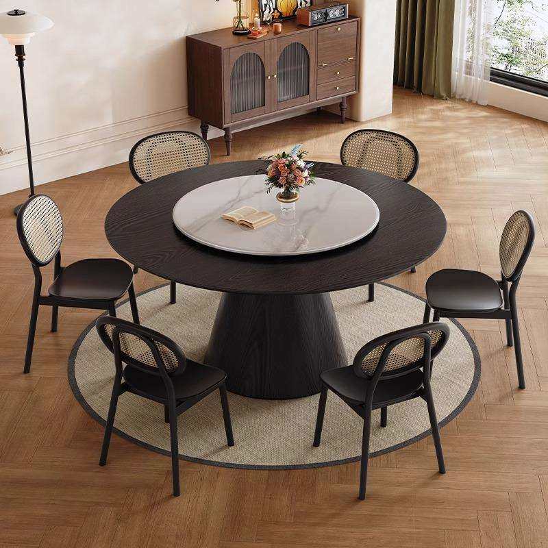 法式复古实木餐桌旋转圆盘吃饭桌子客厅家用小户型一桌四椅组合