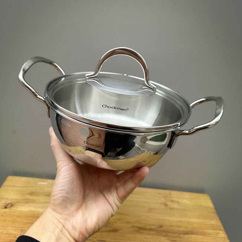小食拉面锅18/10不锈钢汤锅深款双耳泡面锅餐厅煮面锅电磁炉小煮