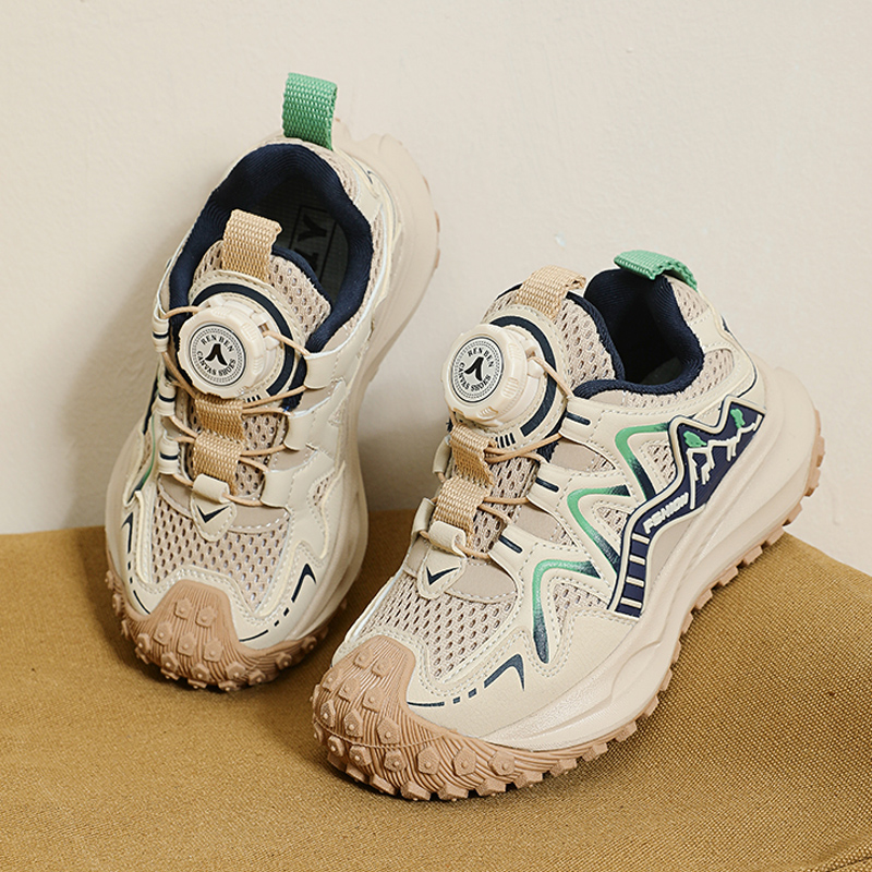 人本童鞋正品秋季轻巧男孩运动跑步鞋防滑鞋底透气双网旋转按钮鞋