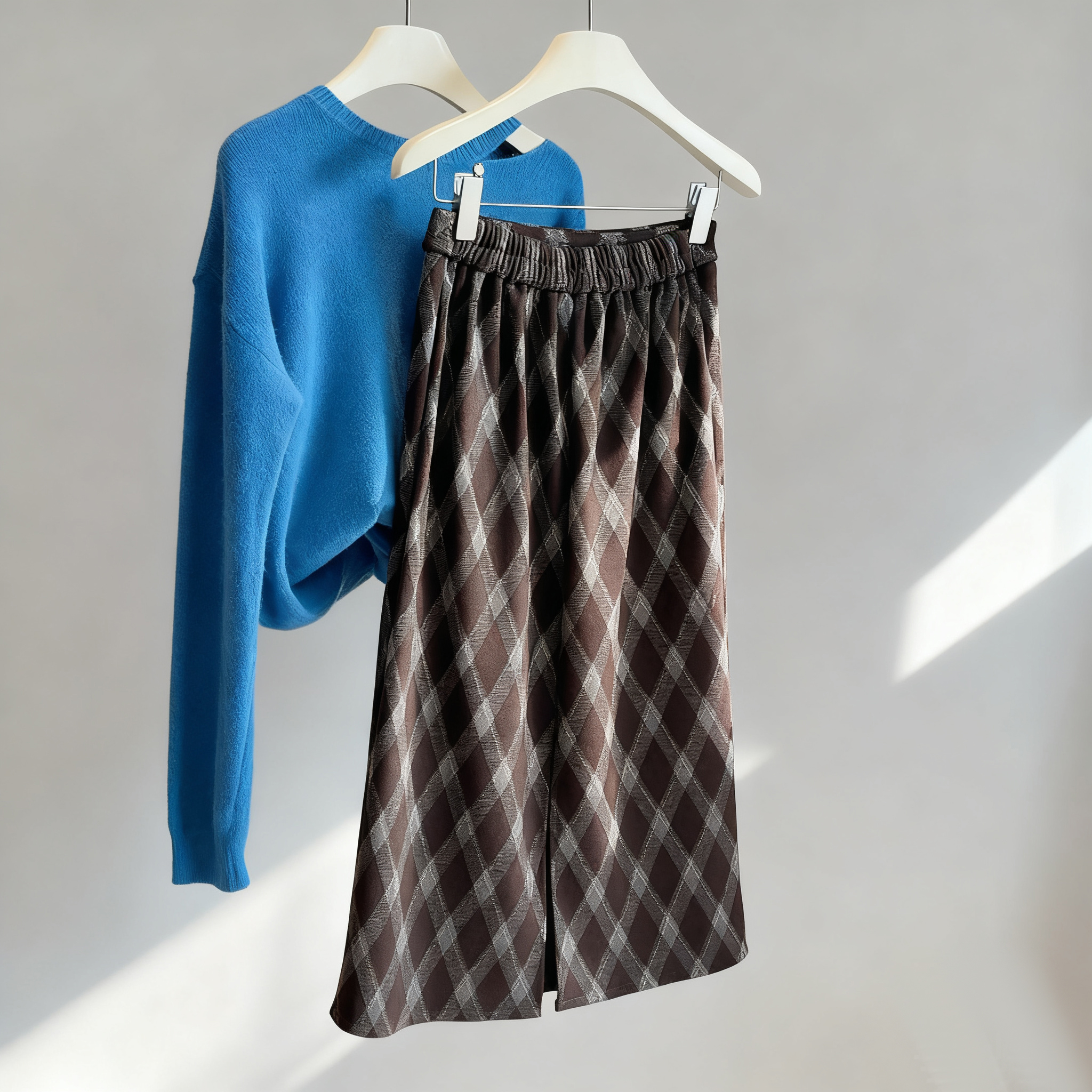 秋冬格子毛呢半身裙女加绒加厚冬天中长款2025新款a字包臀直筒裙