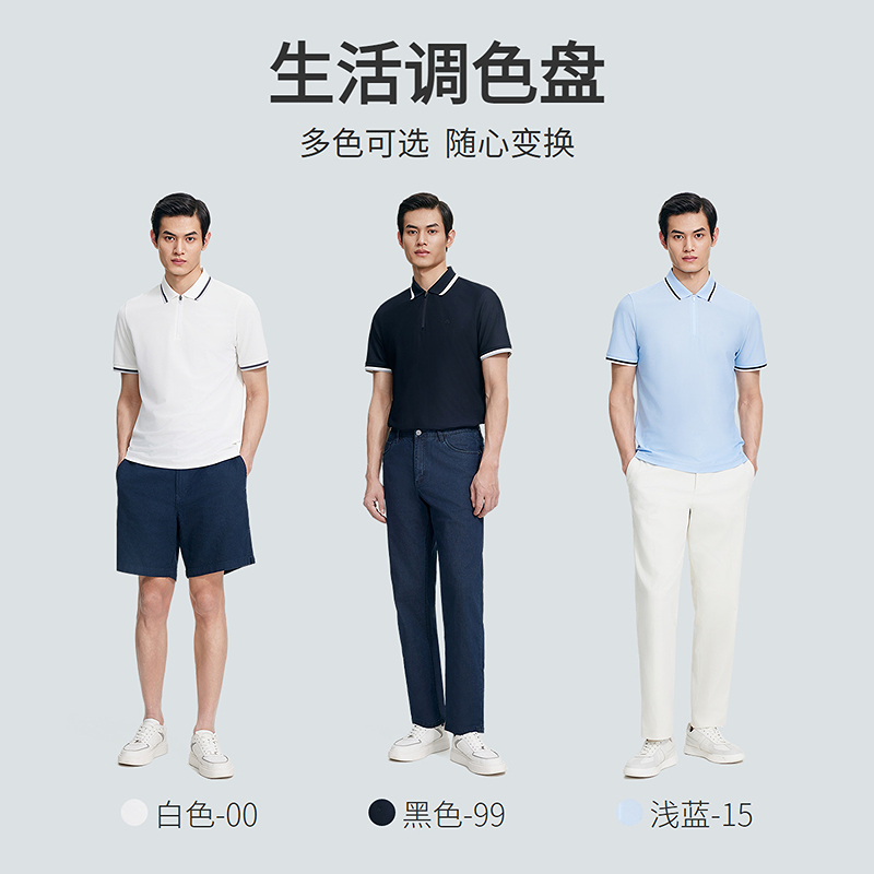 【冰氧吧珠地】金利来2025春夏男士短袖T恤撞色拉链翻领POLO衫男