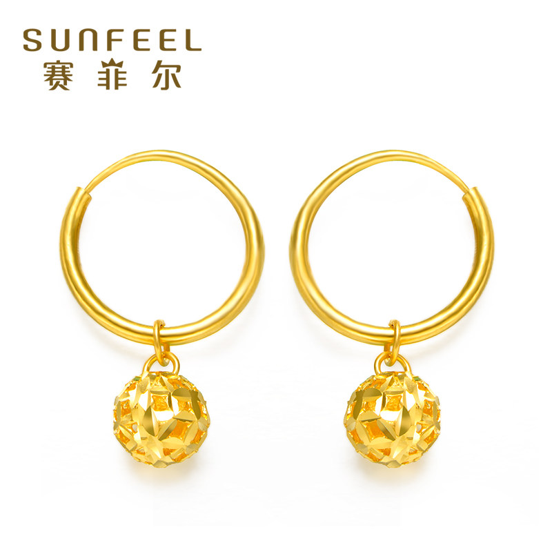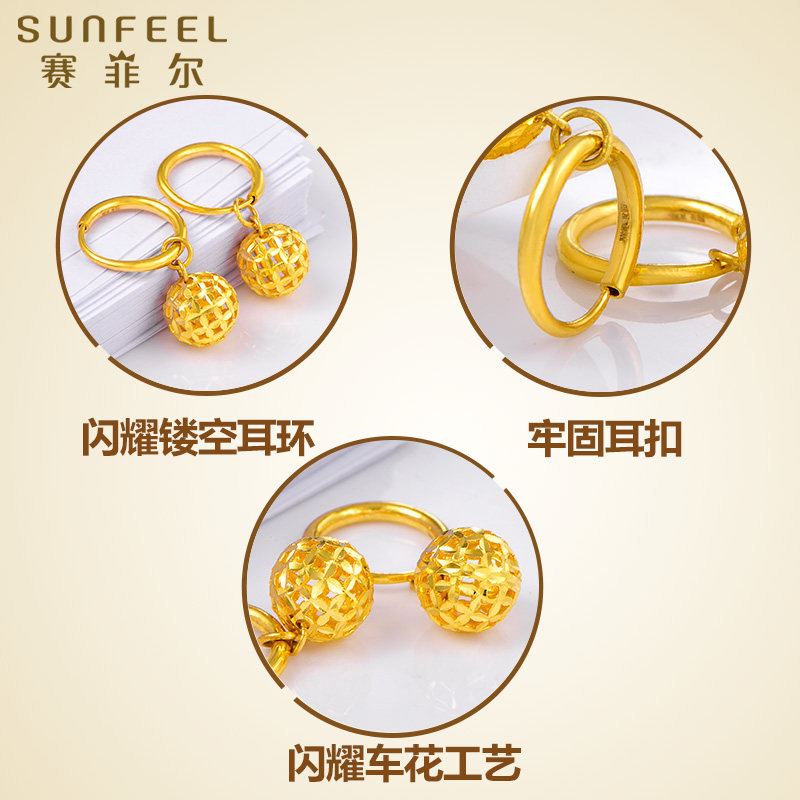 赛菲尔足金999.9耳钉镂空圆球黄金耳环耳饰送女友耳吊黄金耳圈