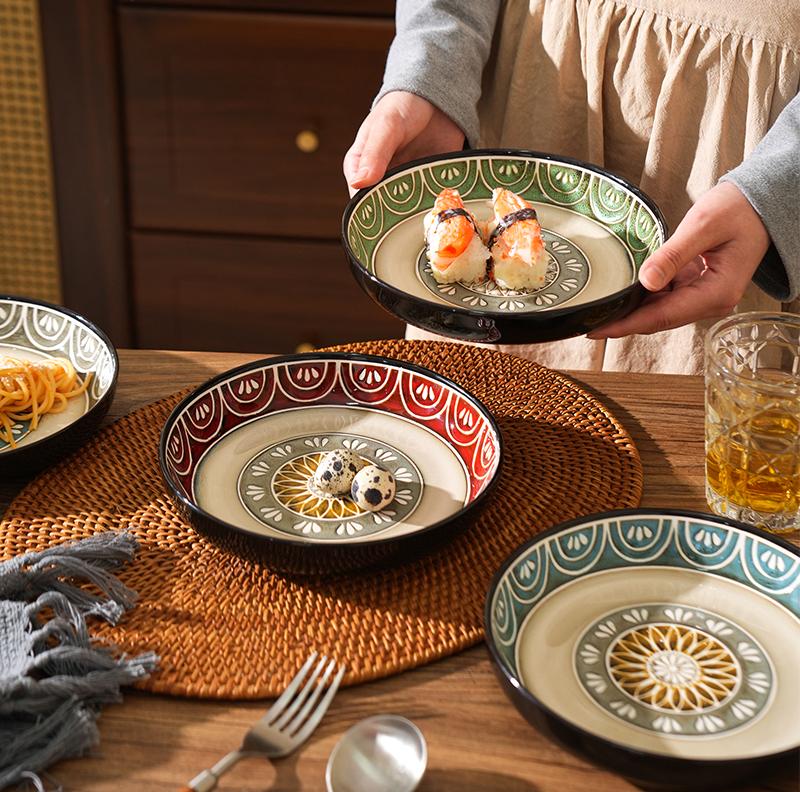 舍里INS风好看的盘子家用菜盘高级感西餐牛排盘窑变花间陶瓷盘
