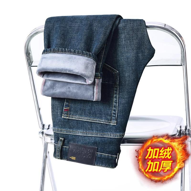 罗蒙高端弹力加绒牛仔裤男超厚保暖直筒宽松潮流休闲2025冬季新款