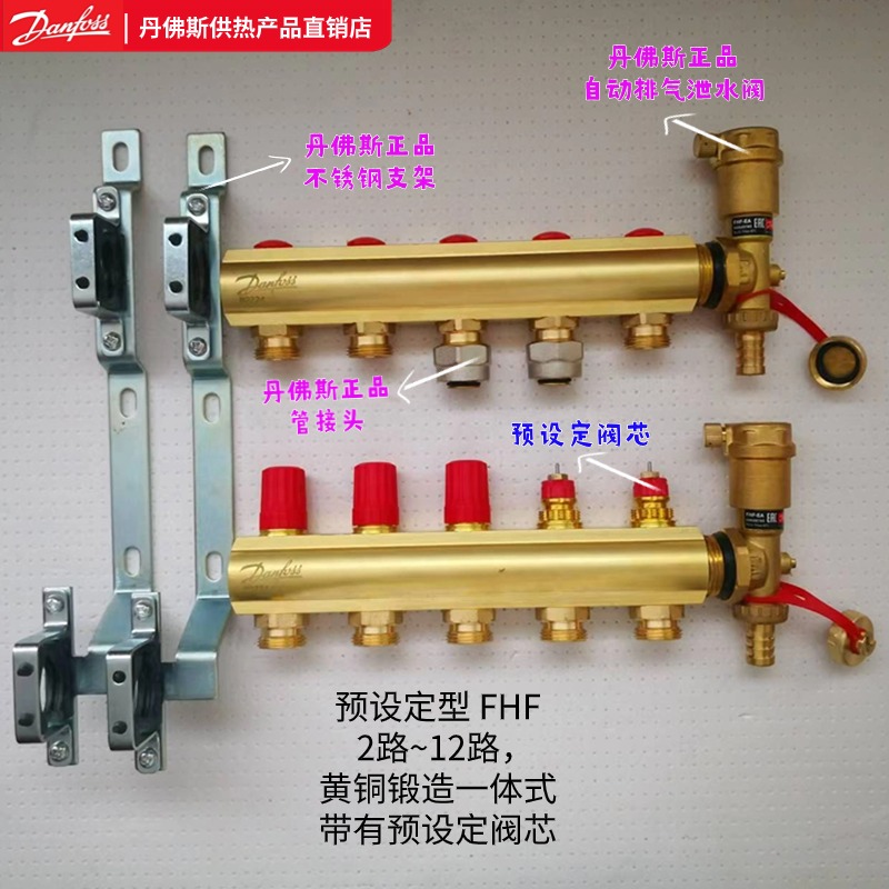 Danfoss丹佛斯分水器FHF-F/FHF预设定流量计家用地暖地热黄铜锻造