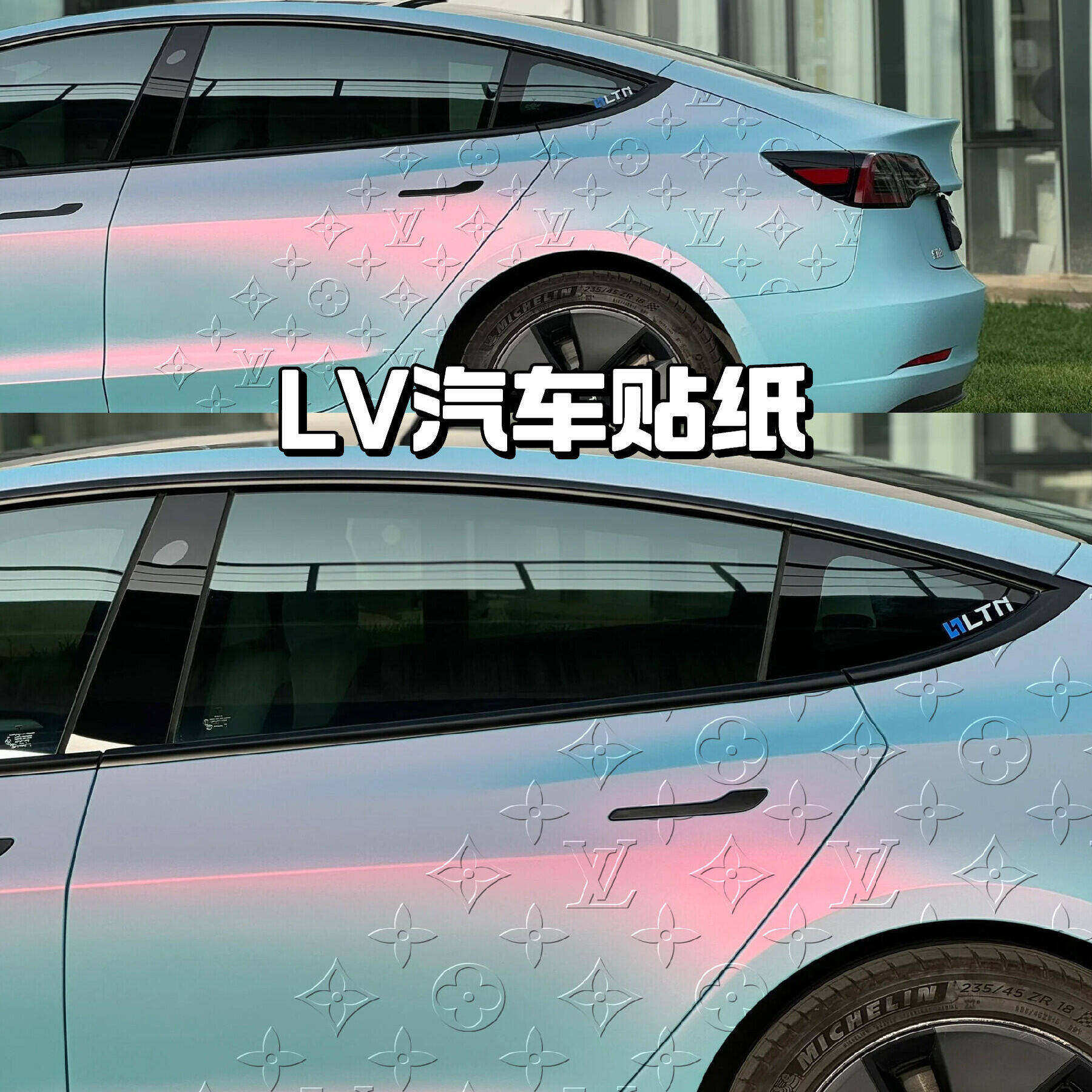 LV浮雕工艺改色膜个性车身贴潮流暗纹浮雕车身叶子板贴纸贴高级感