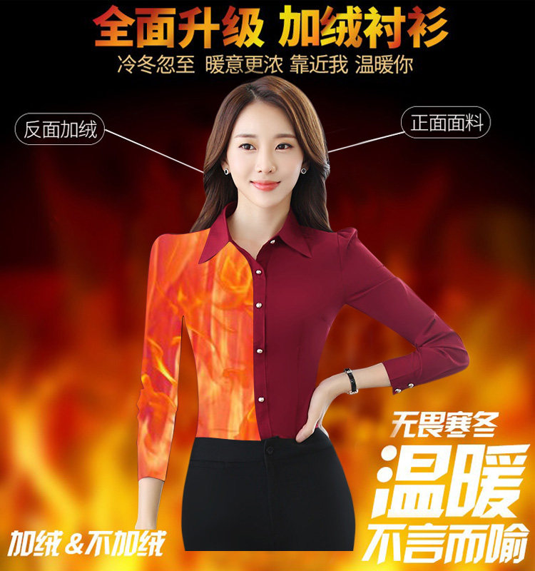 2025秋冬新款保暖衬衣打底衫寸衫OL职业工装加厚加绒白衬衫女修身