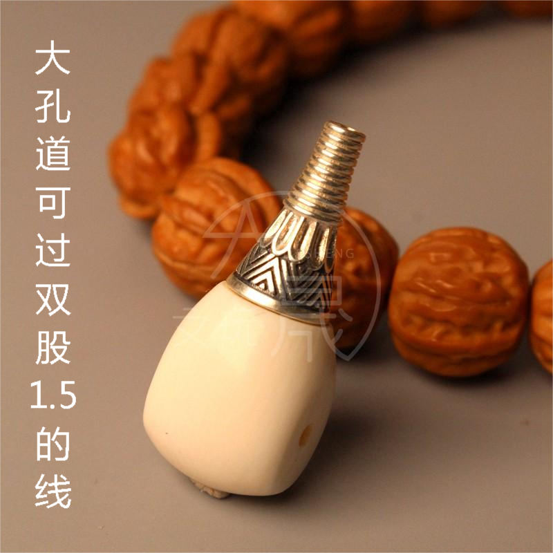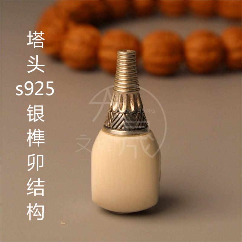 天然猛犸牙s925纯银塔头三通配饰手串108星月椰蒂金刚百香籽文玩