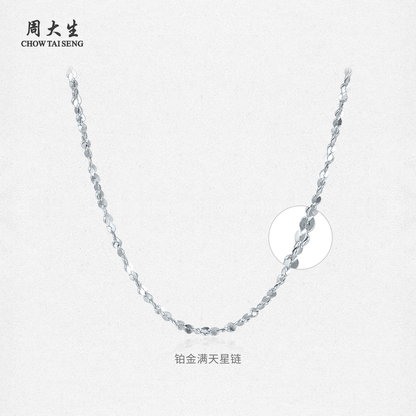 周大生铂金素链女Pt950肖邦链O字链满天星链可调节生日礼物送女友