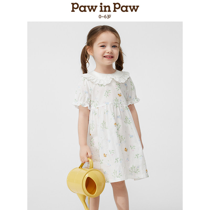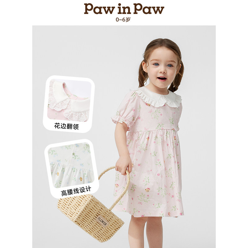 PawinPaw卡通小熊童装25年春夏新款女宝宝花边翻领甜美满印连衣裙