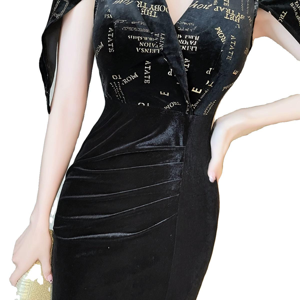 2025新款秋冬丝绒晚礼服 k歌技师气质v领低胸性感长款连衣裙礼服