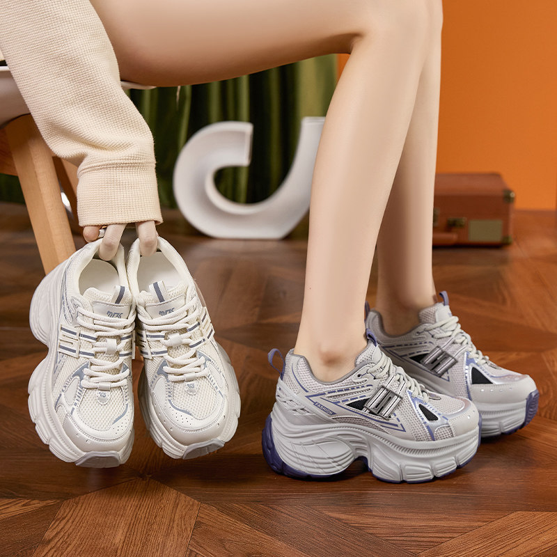 ZFCQ香港厚底网面内增高老爹鞋女真皮2026春夏新款高跟运动休闲鞋