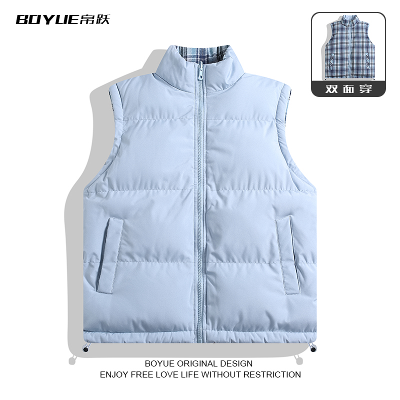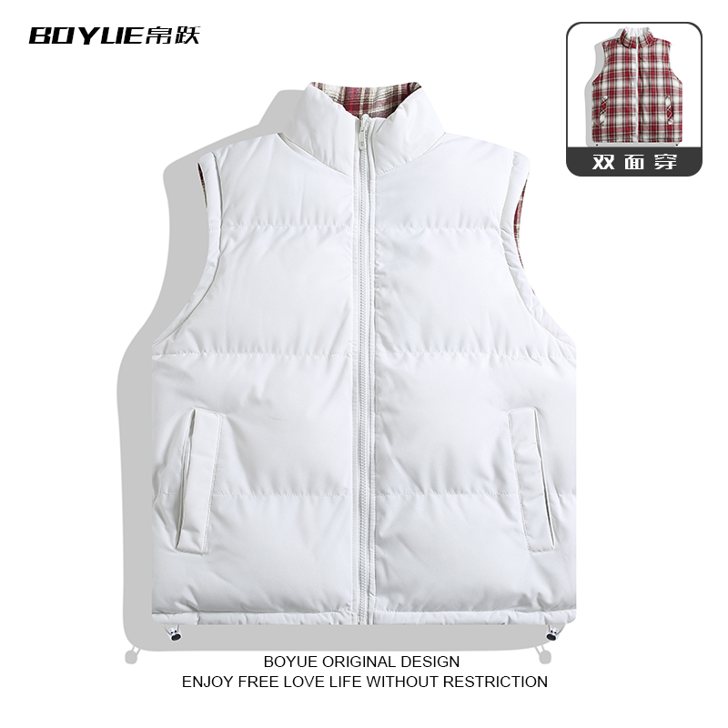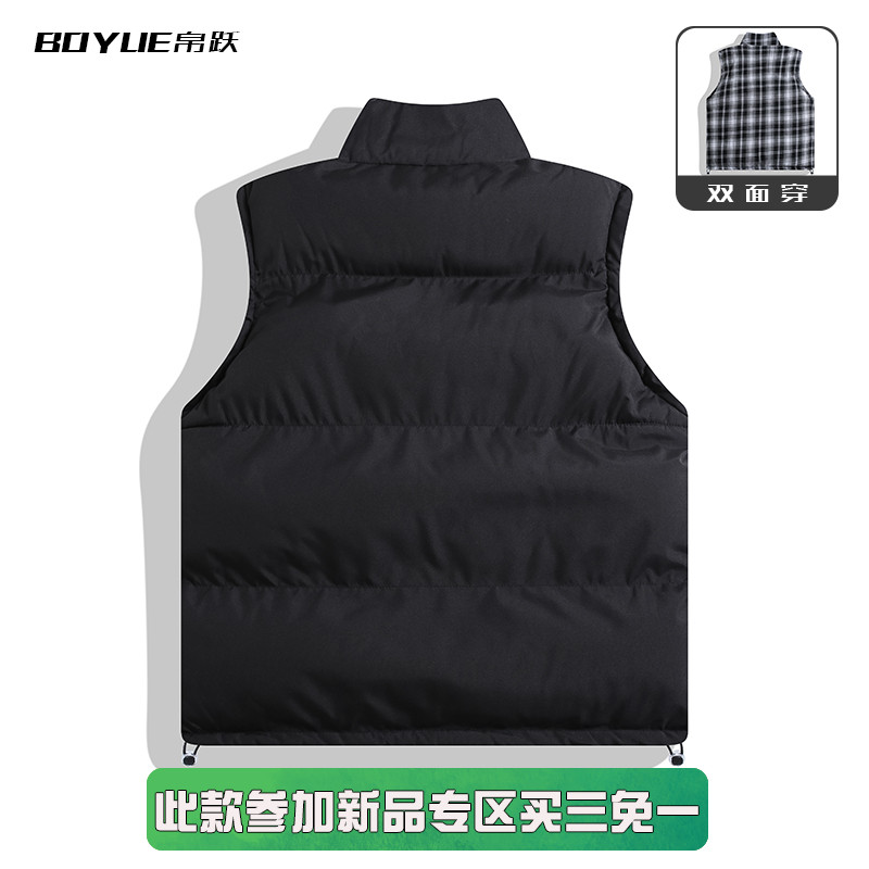 BOYUE帛跃日系双面穿格子棉服马甲立领时尚帅气坎肩无袖外套男女