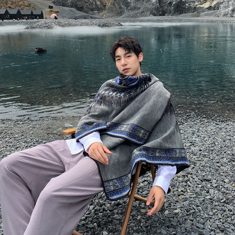 云南青海旅游披肩男女2025新款外搭复古针织斗篷川西新疆旅行穿搭