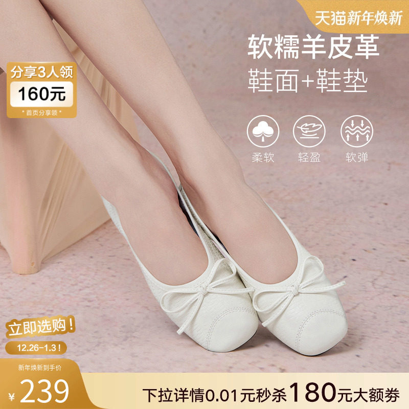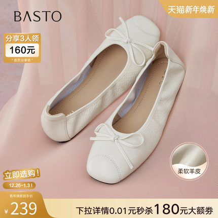 百思图2025秋商场新款舒适羊皮浅口单鞋一脚蹬蛋卷鞋女鞋E5231CQ5