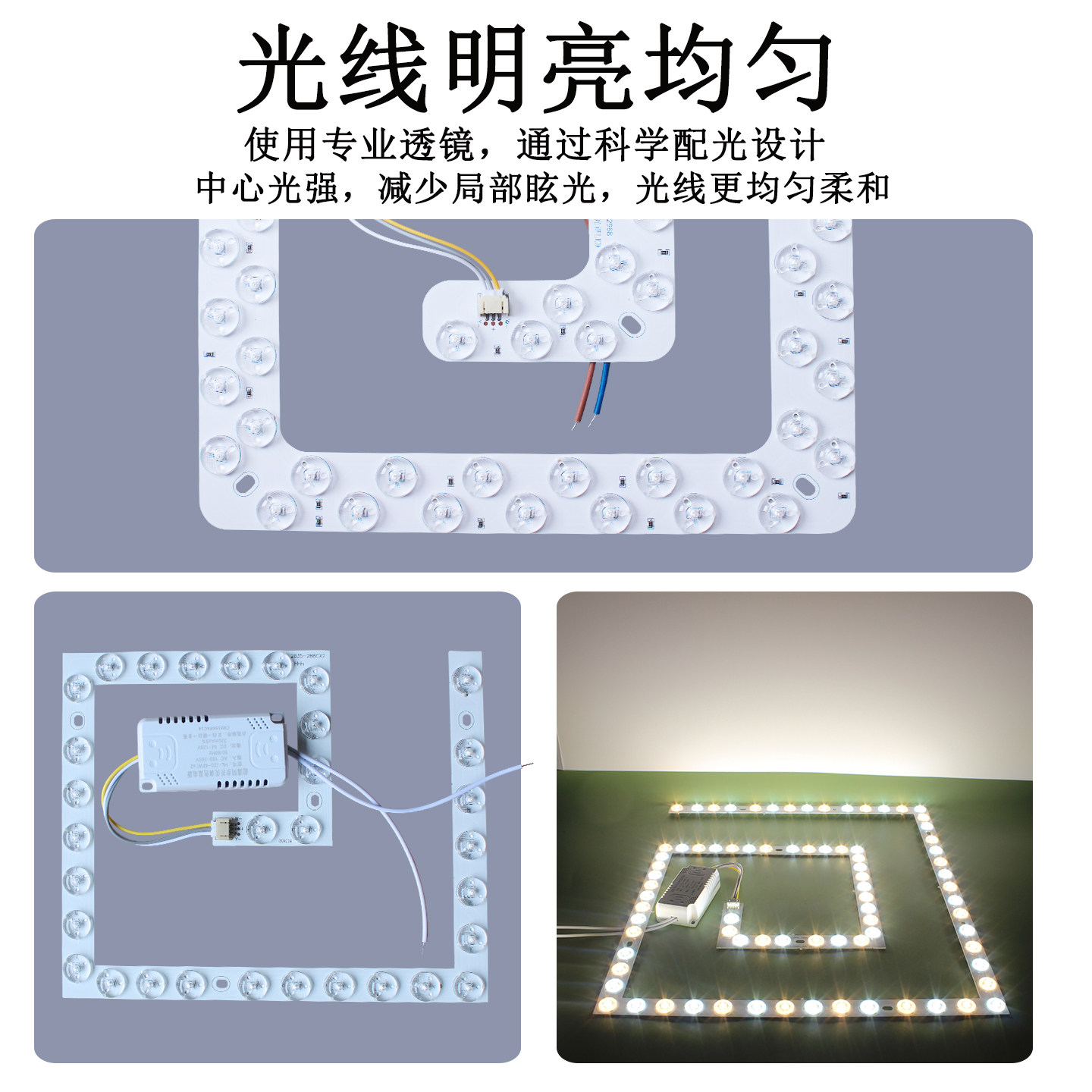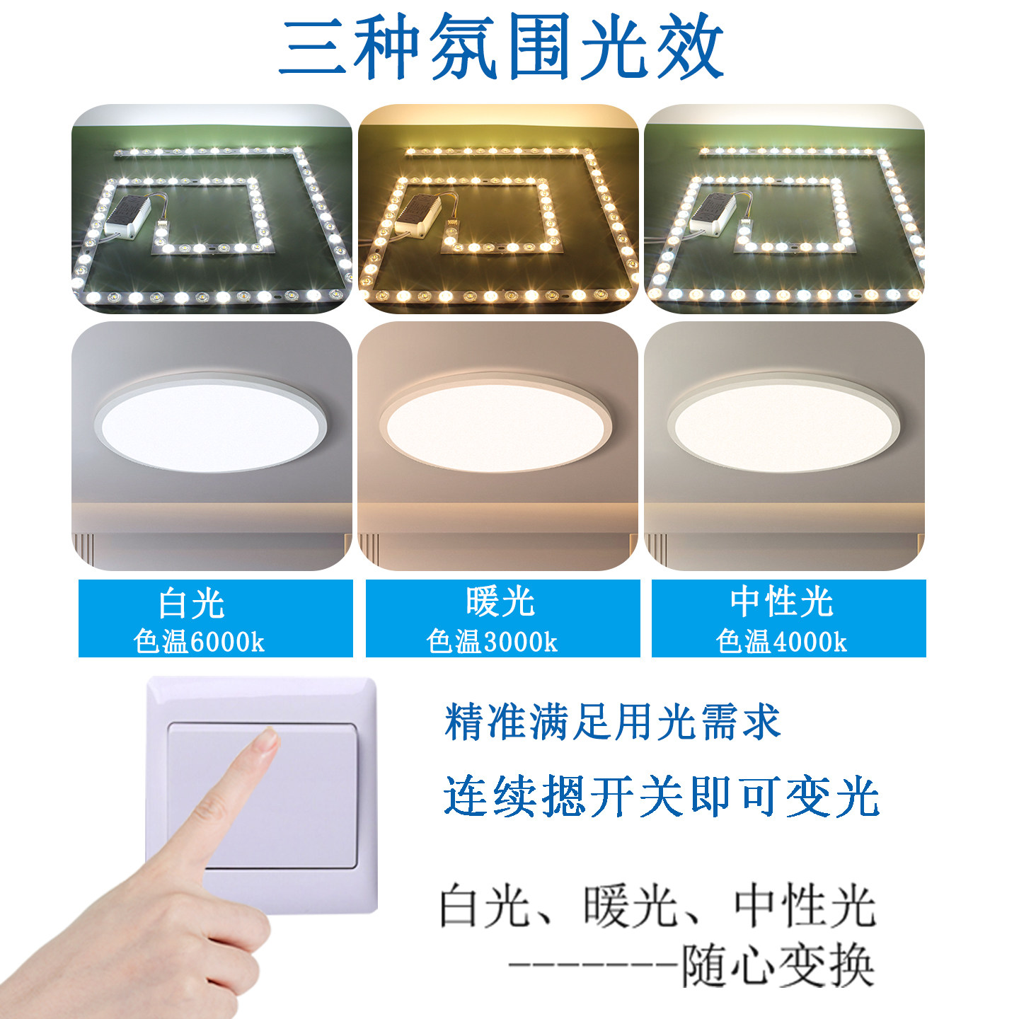 方形led灯芯吸顶灯替换芯回形灯盘磁吸灯片三色变光灯条护眼灯珠